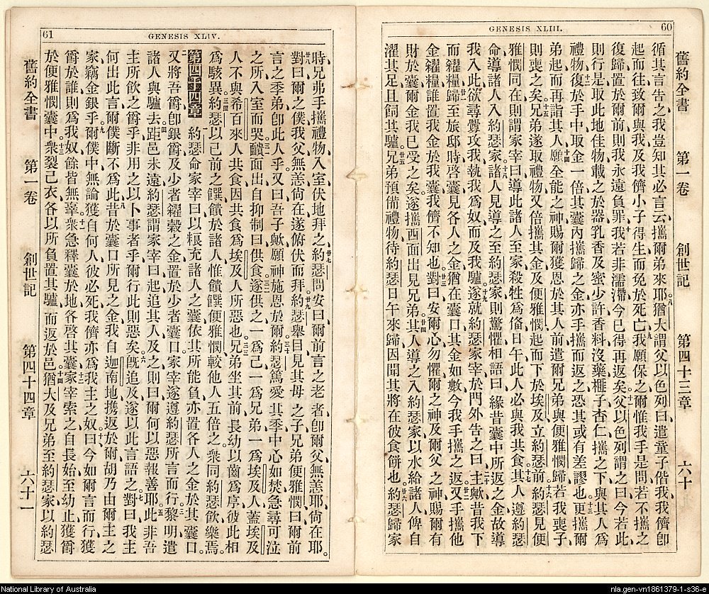 1865年旧约创世记至士师记 创世记 43 章 8 节到 44 章 14 节