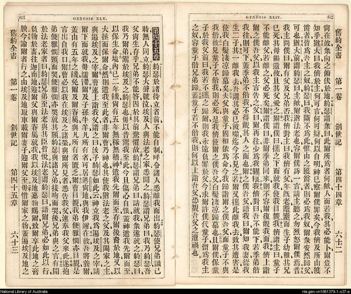 1865年旧约创世记至士师记 创世记 44 章 15 节到 45 章 20 节