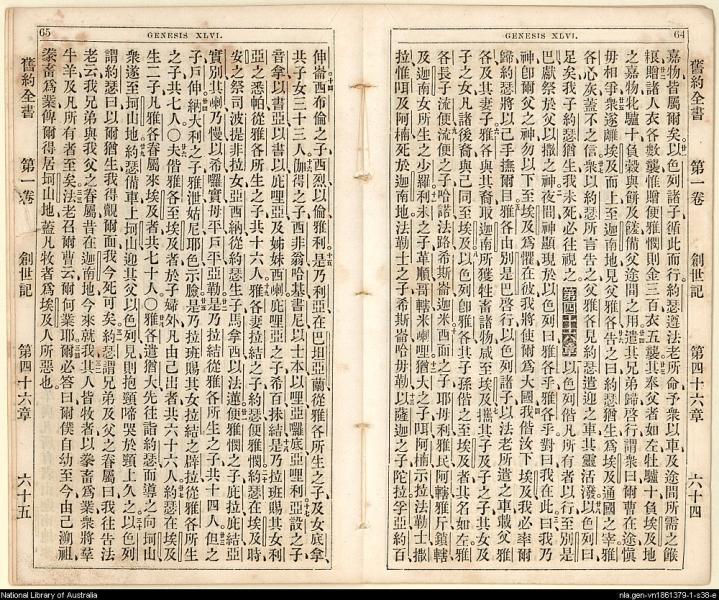 1865年旧约创世记至士师记 创世记 45 章 21 节到 46 章 34 节