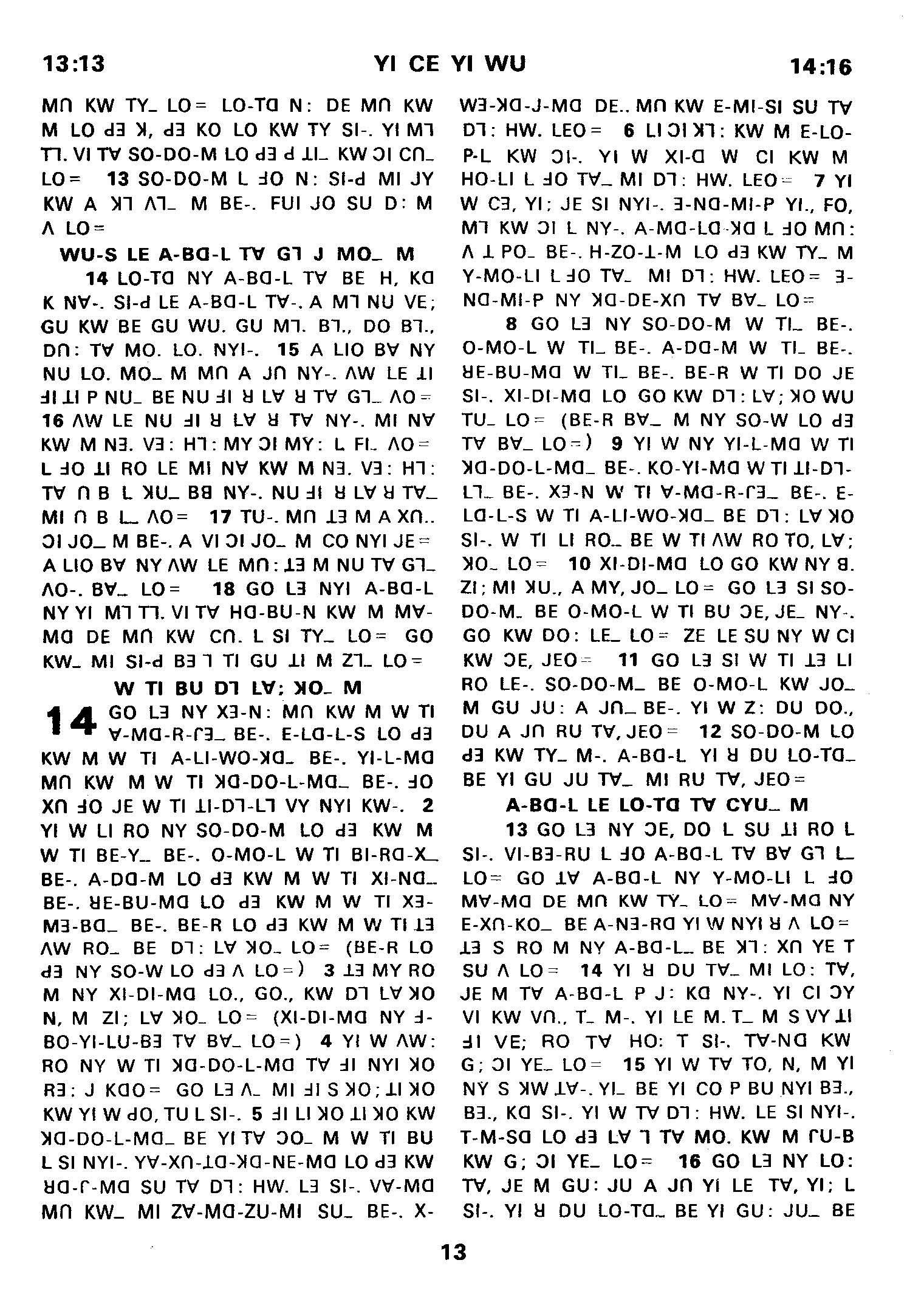 1980年傈僳语圣经全书 创世记 13 章 13 节到 14 章 16 节