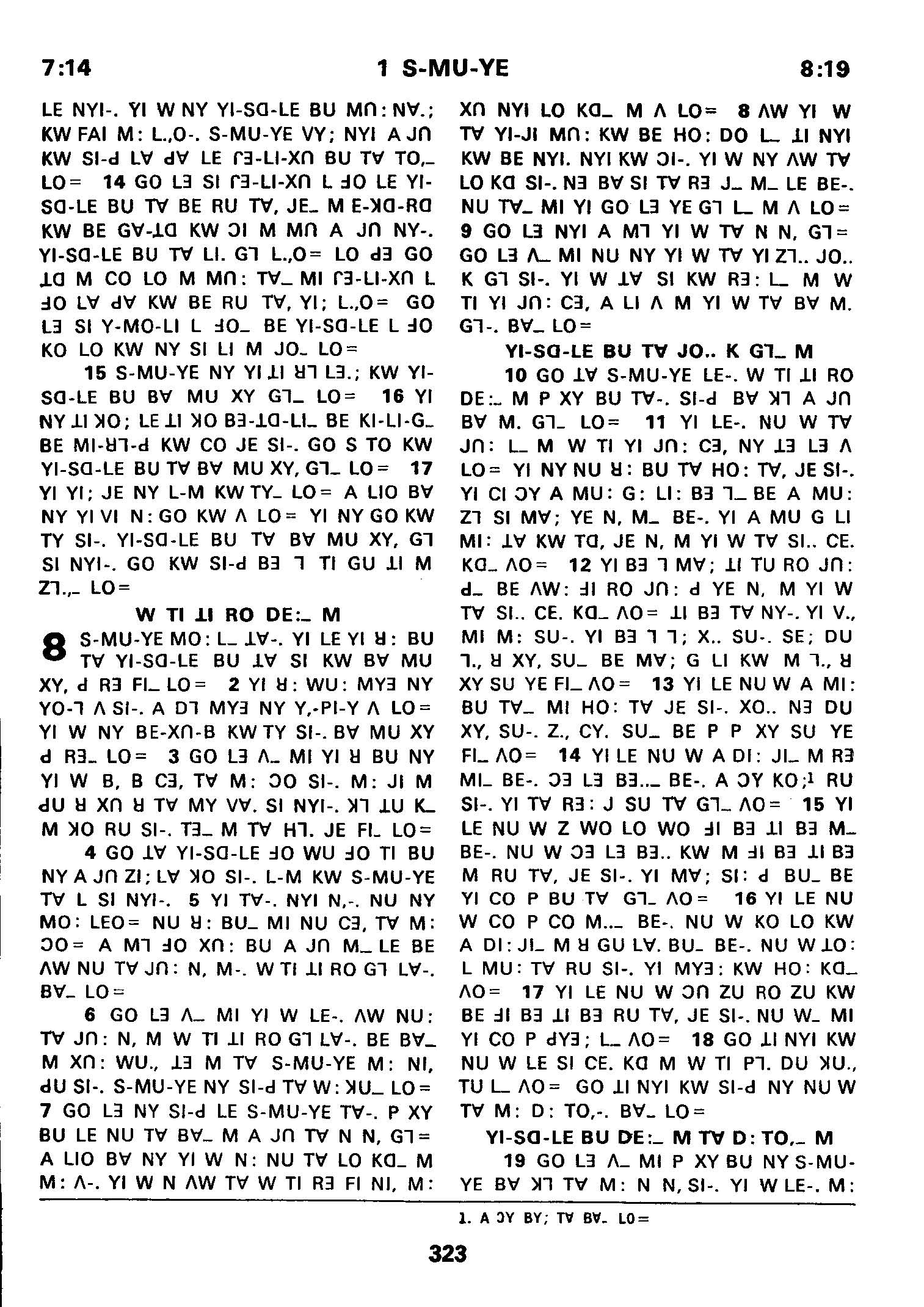 1980年傈僳语圣经全书 撒母耳记上 7 章 14 节到 8 章 19 节