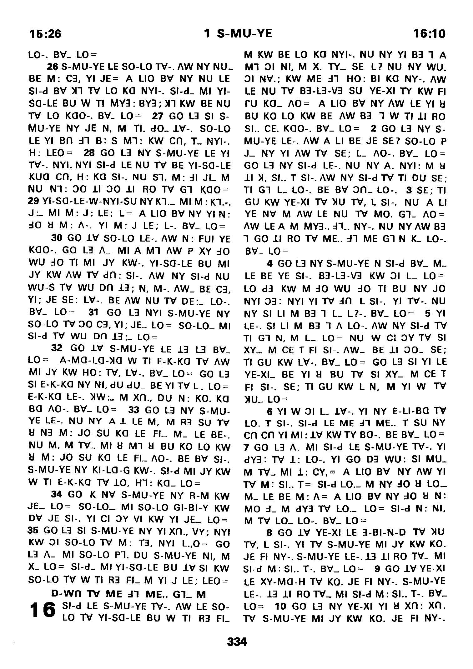 1980年傈僳语圣经全书 撒母耳记上 15 章 26 节到 16 章 10 节