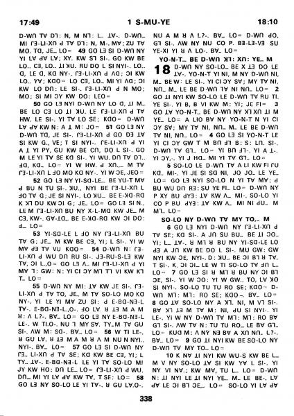 1980年傈僳语圣经全书 撒母耳记上 17 章 49 节到 18 章 10 节