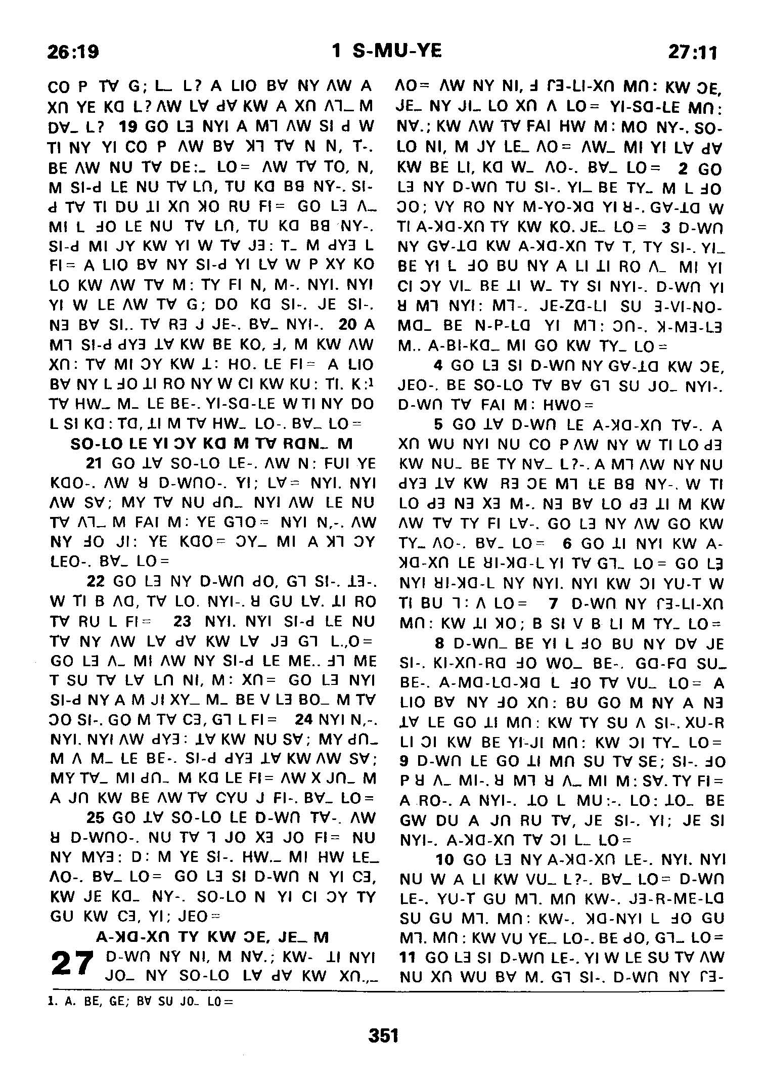 1980年傈僳语圣经全书 撒母耳记上 26 章 19 节到 27 章 11 节