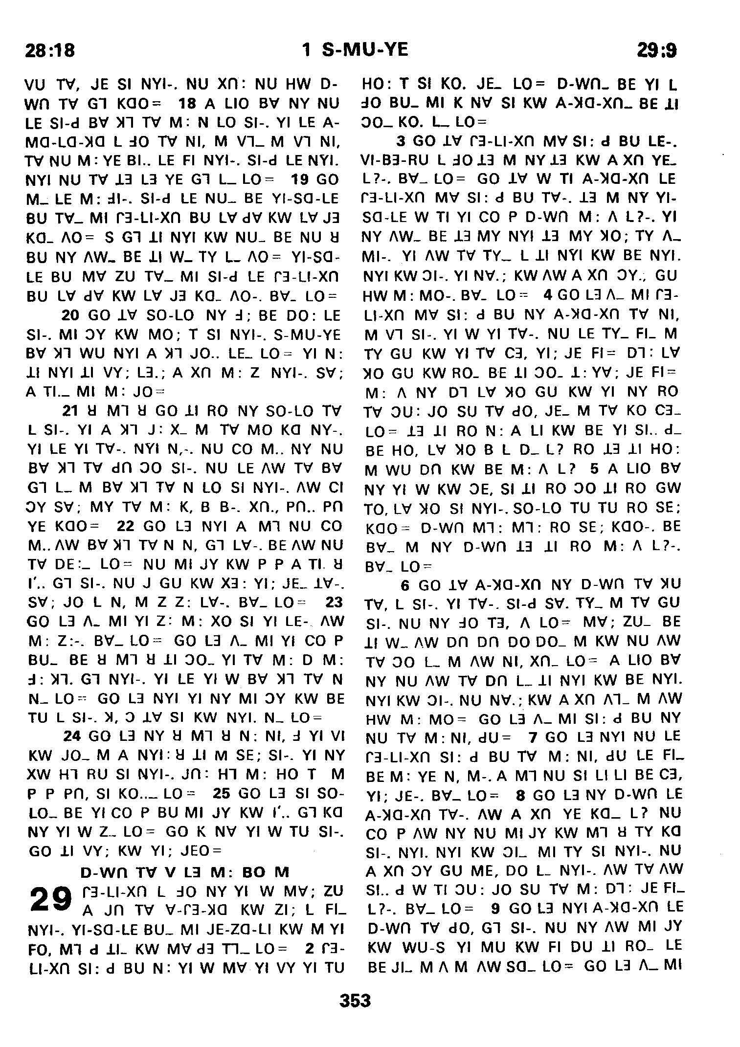 1980年傈僳语圣经全书 撒母耳记上 28 章 18 节到 29 章 9 节