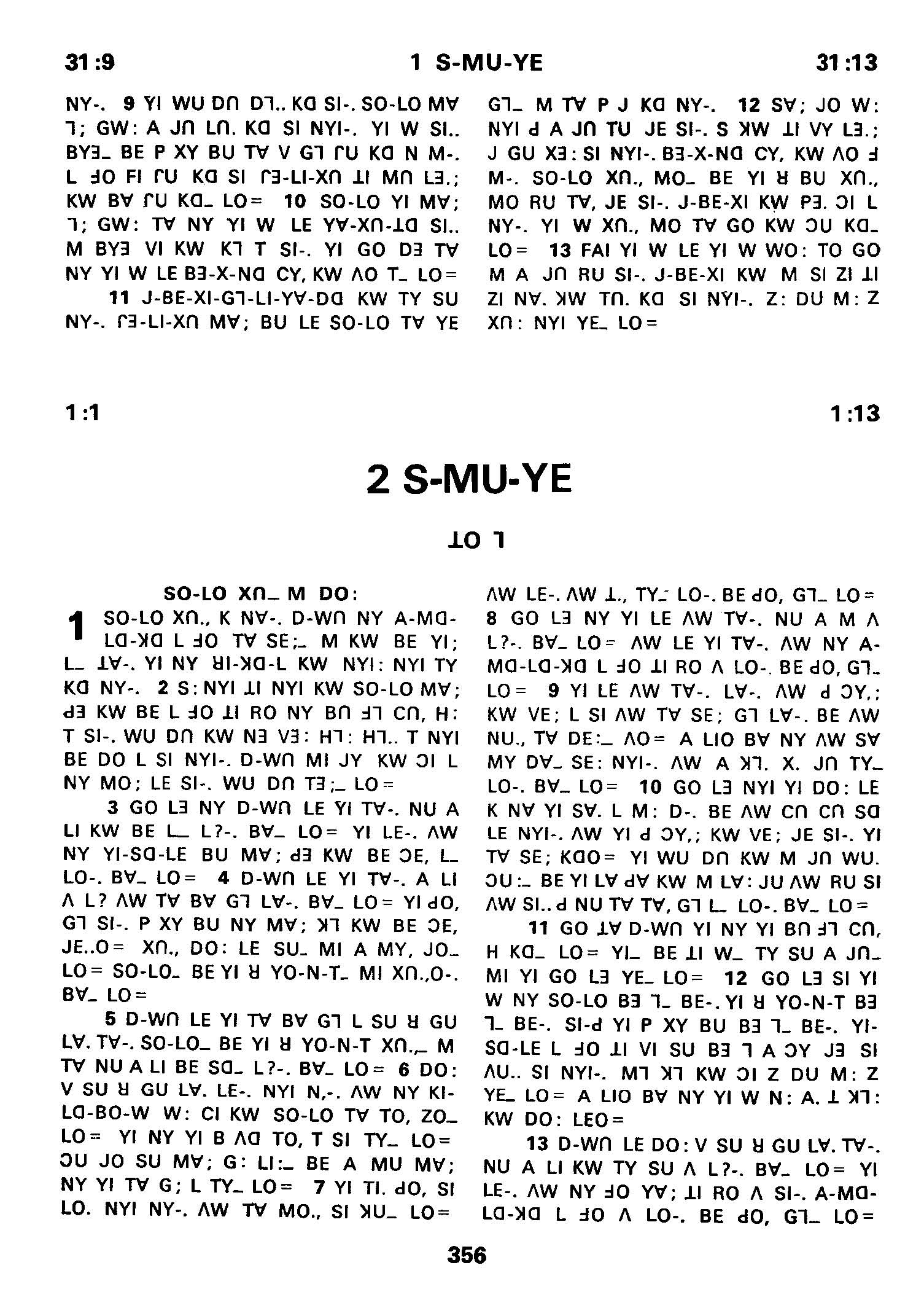1980年傈僳语圣经全书 撒母耳记下 1 章 1 节到 1 章 13 节