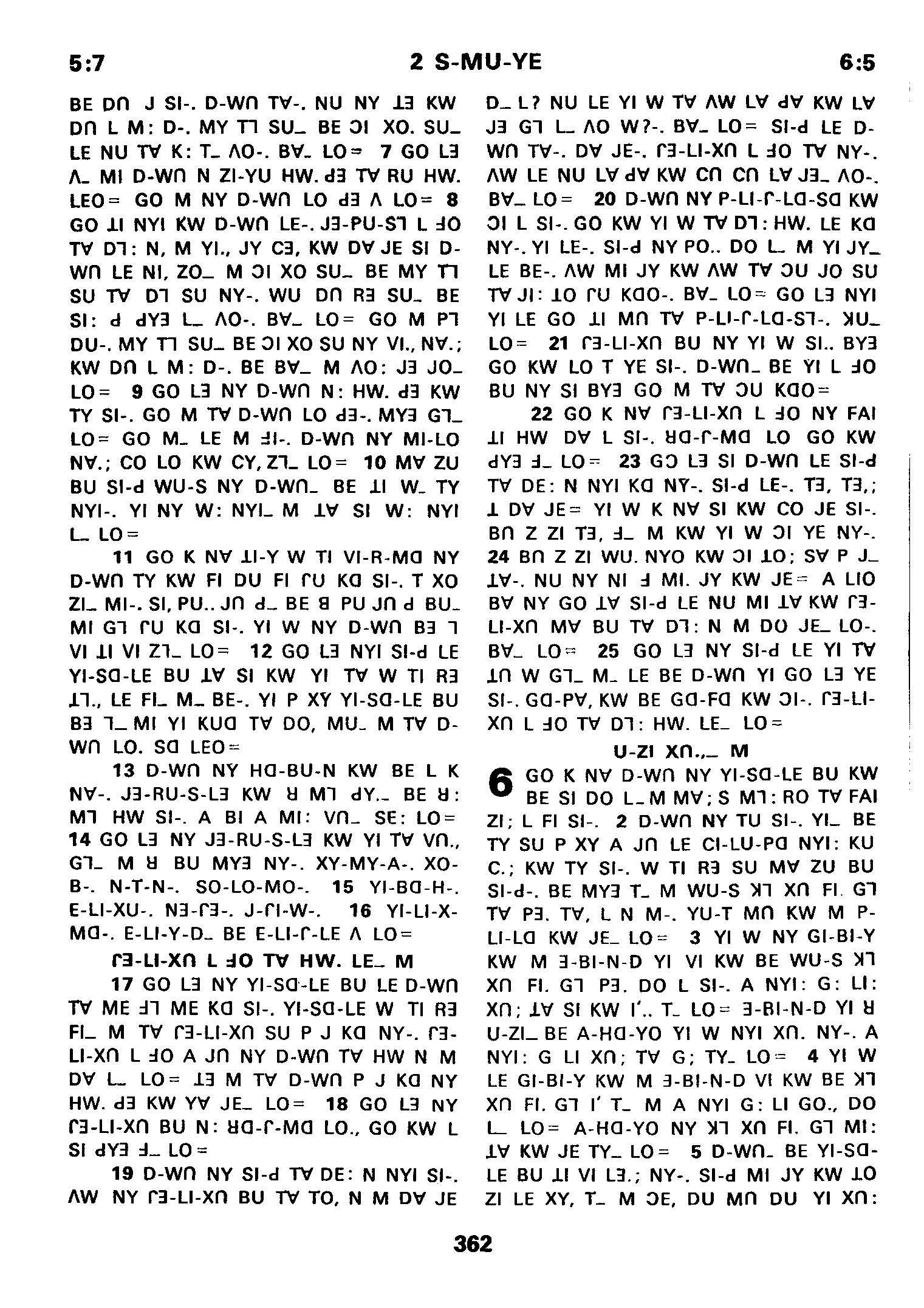 1980年傈僳语圣经全书 撒母耳记下 5 章 7 节到 6 章 5 节
