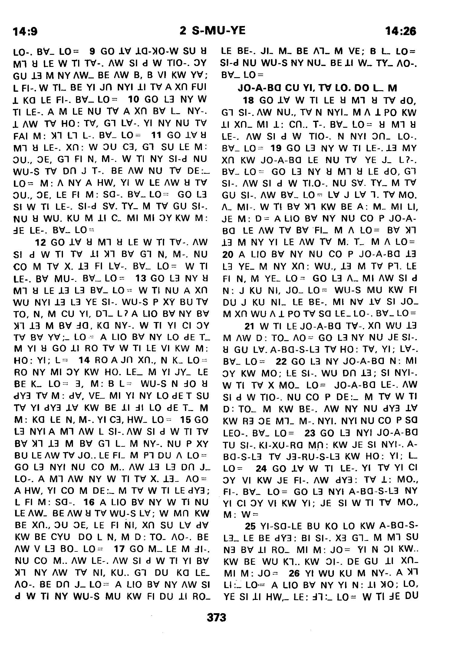 1980年傈僳语圣经全书 撒母耳记下 14 章 9 节到 14 章 26 节