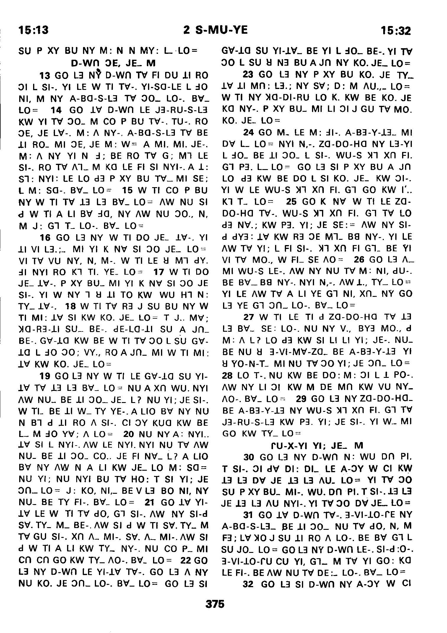 1980年傈僳语圣经全书 撒母耳记下 15 章 13 节到 15 章 32 节