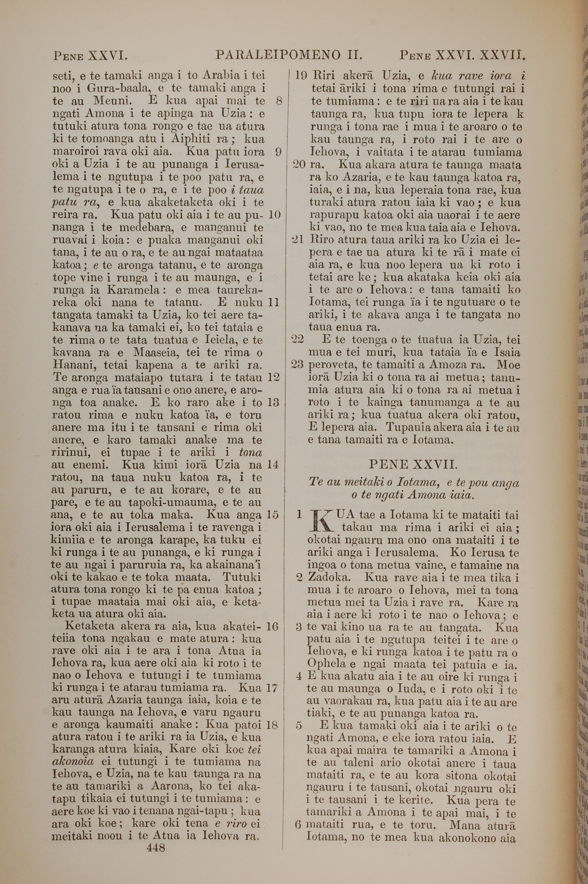 1851年BIBILA TAPU RA 历代志下 26 章 8 节到 27 章 6 节
