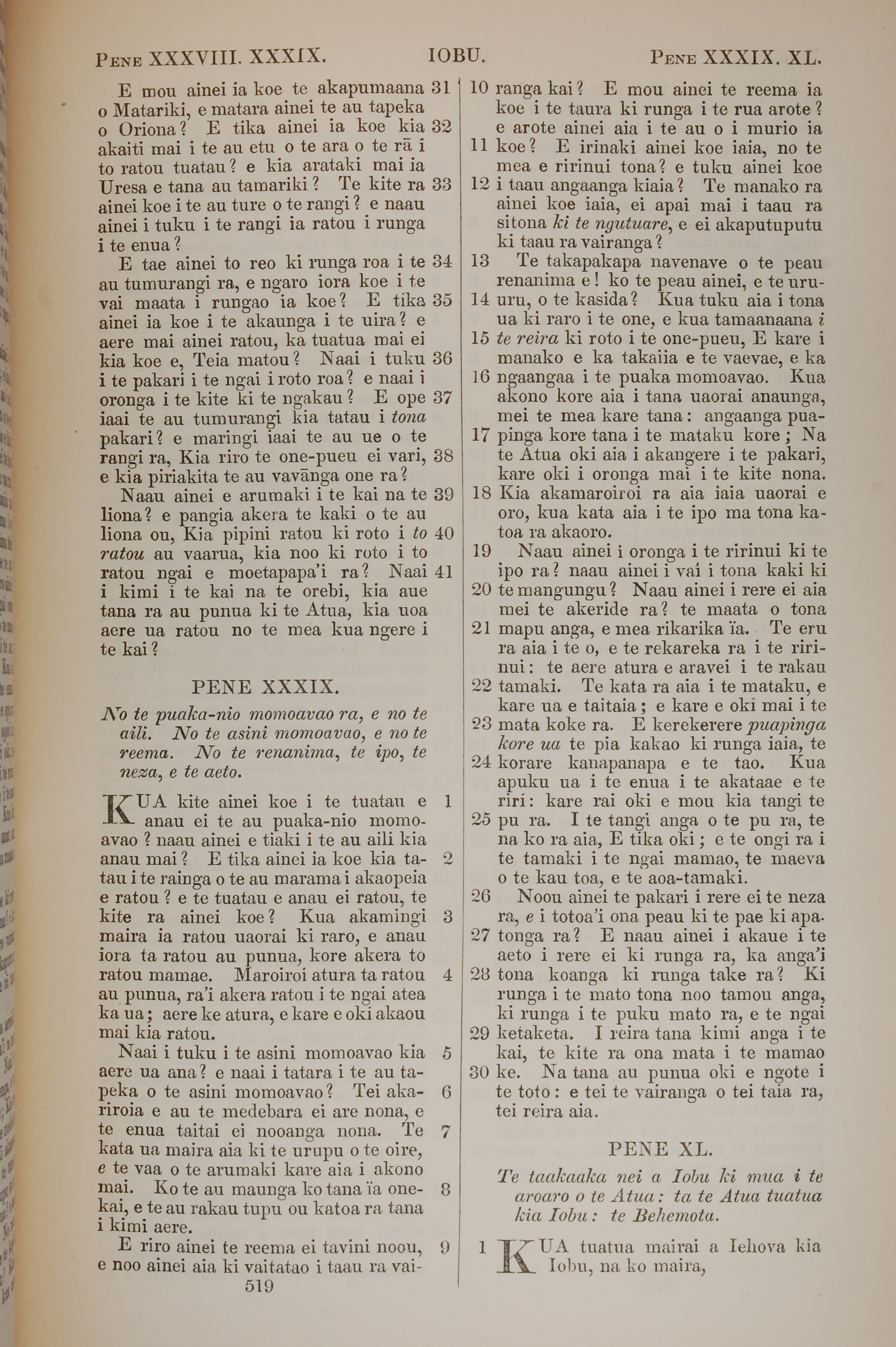 1851年BIBILA TAPU RA 约伯记 38 章 31 节到 40 章 1 节