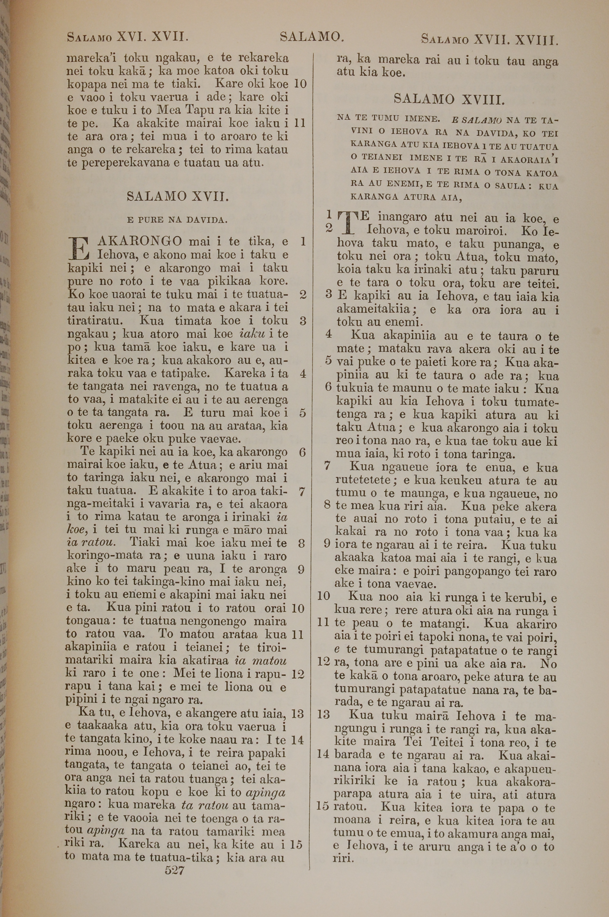 1851年BIBILA TAPU RA 诗篇 16 章 10 节到 18 章 15 节