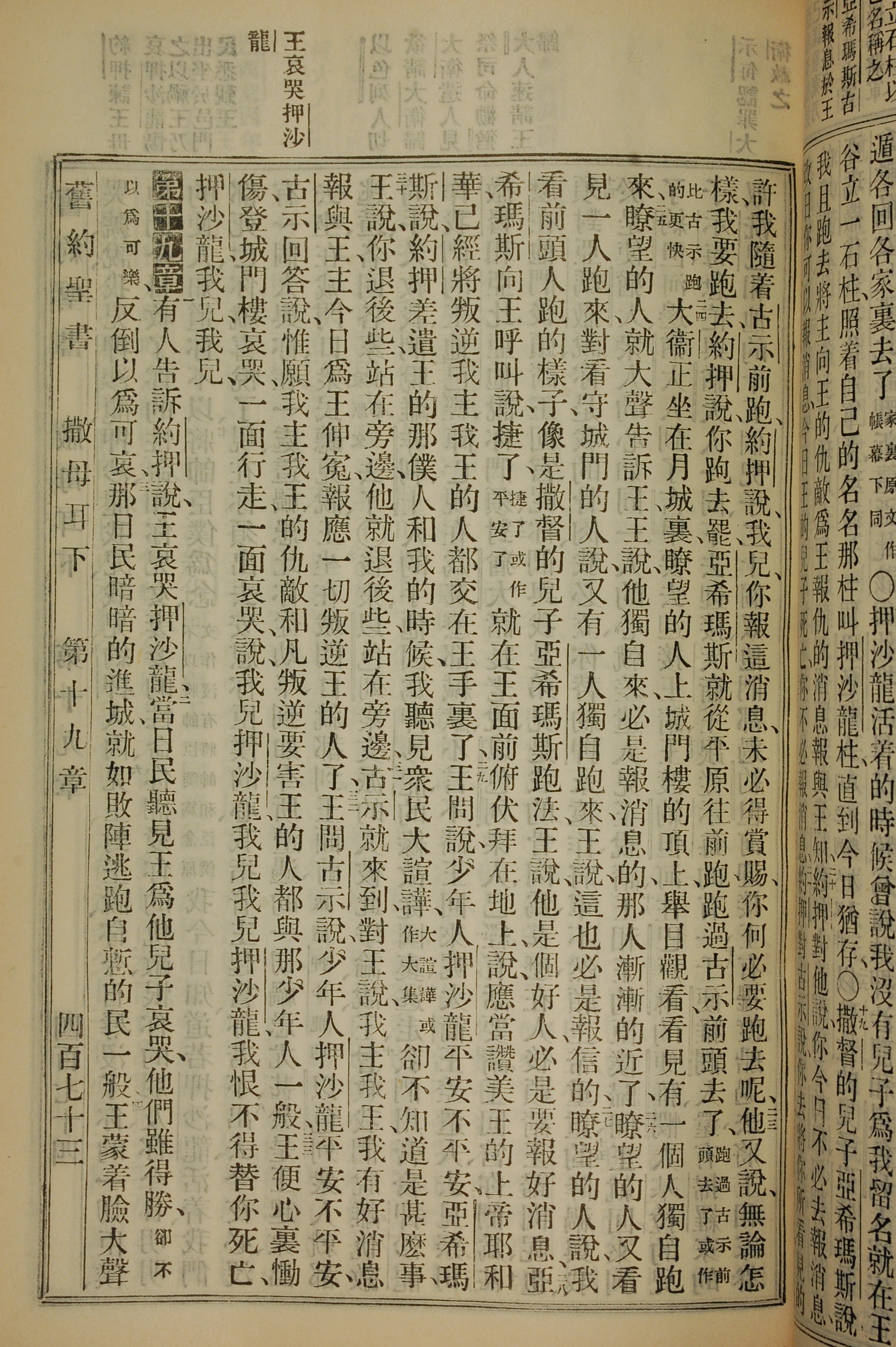 1912年新旧约圣书 撒母耳记下 18 章 23 节到 19 章 3 节