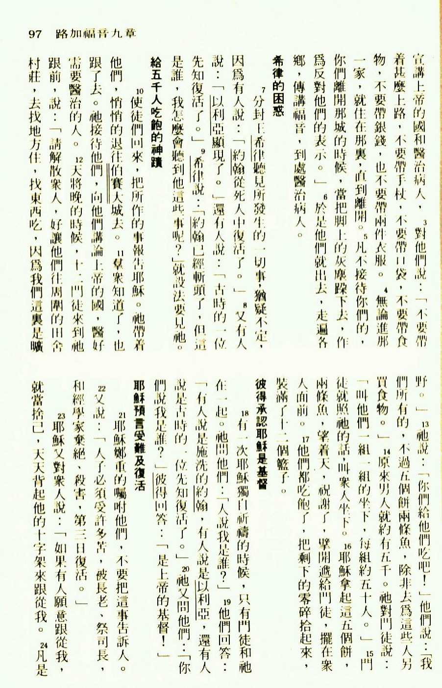 1976年圣经新译本新约 路加福音 9 章 3 节到 9 章 24 节