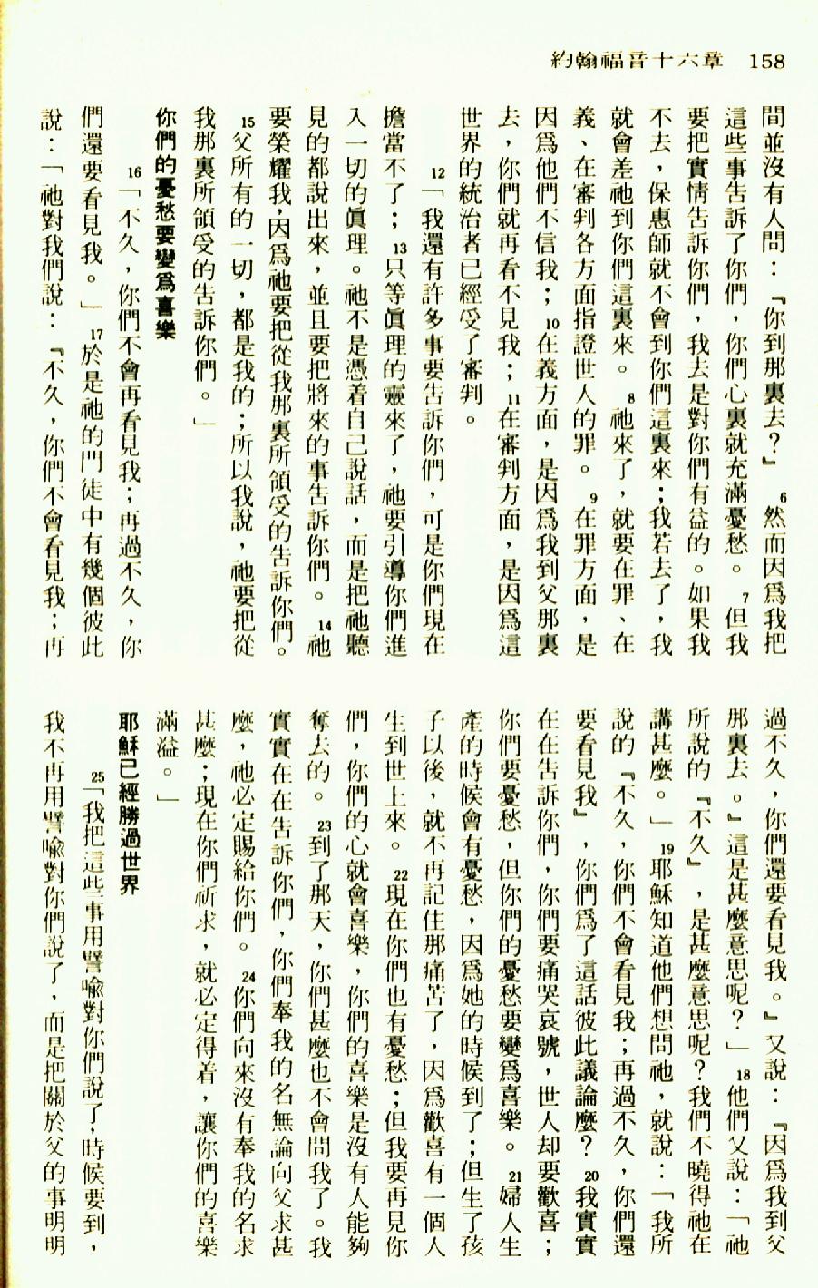 1976年圣经新译本新约 约翰福音 16 章 6 节到 16 章 25 节