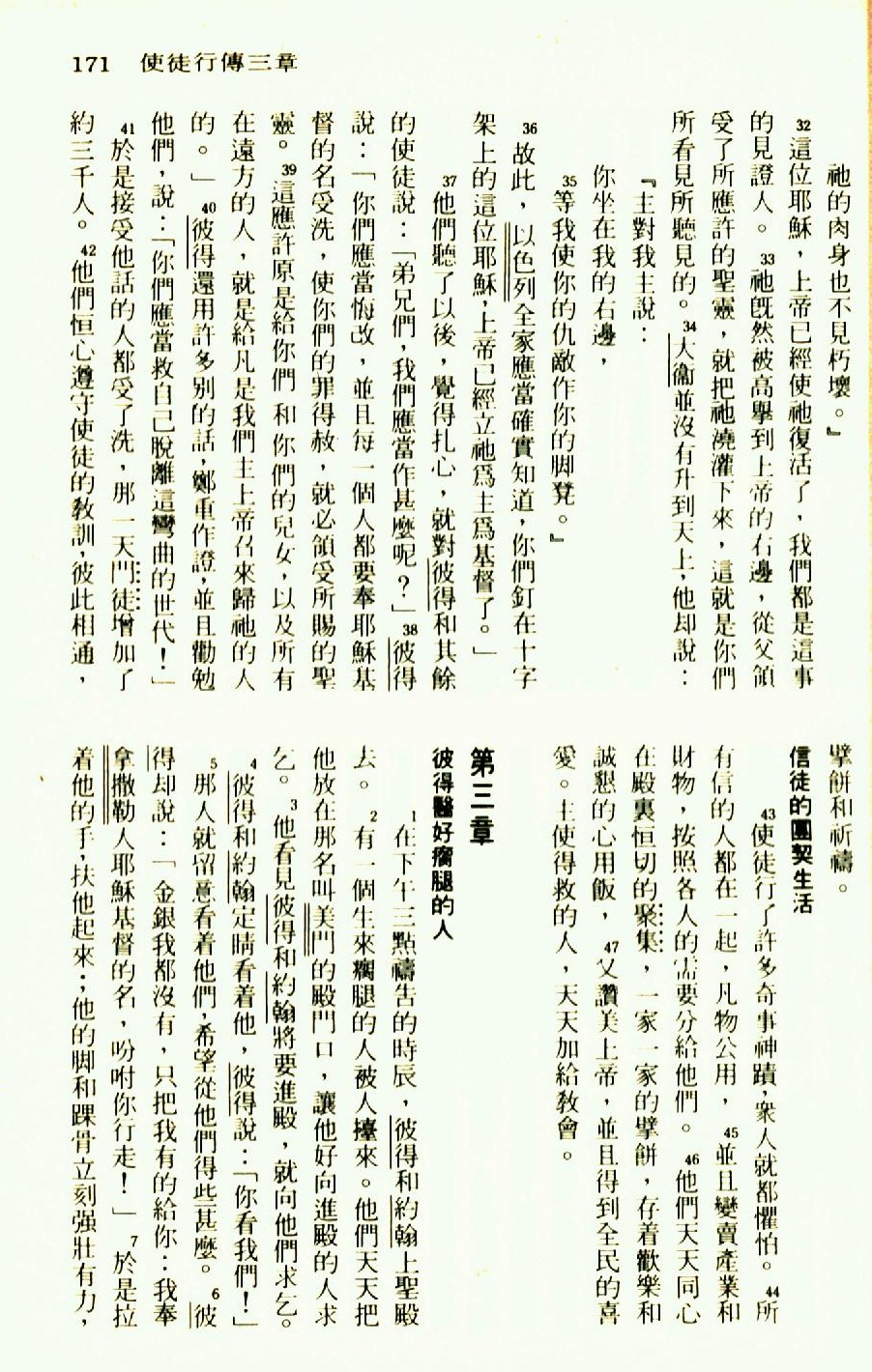 1976年圣经新译本新约 使徒行传 2 章 32 节到 3 章 7 节