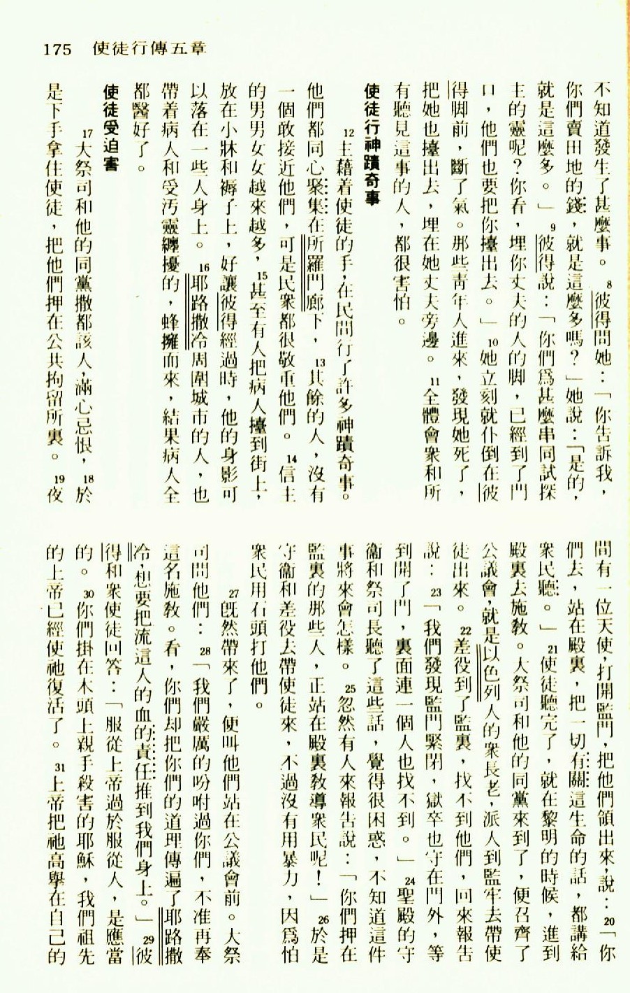 1976年圣经新译本新约 使徒行传 5 章 8 节到 5 章 31 节