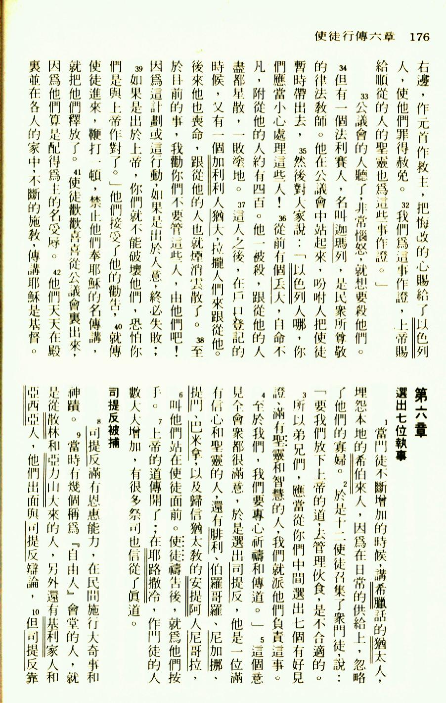 1976年圣经新译本新约 使徒行传 5 章 32 节到 6 章 10 节