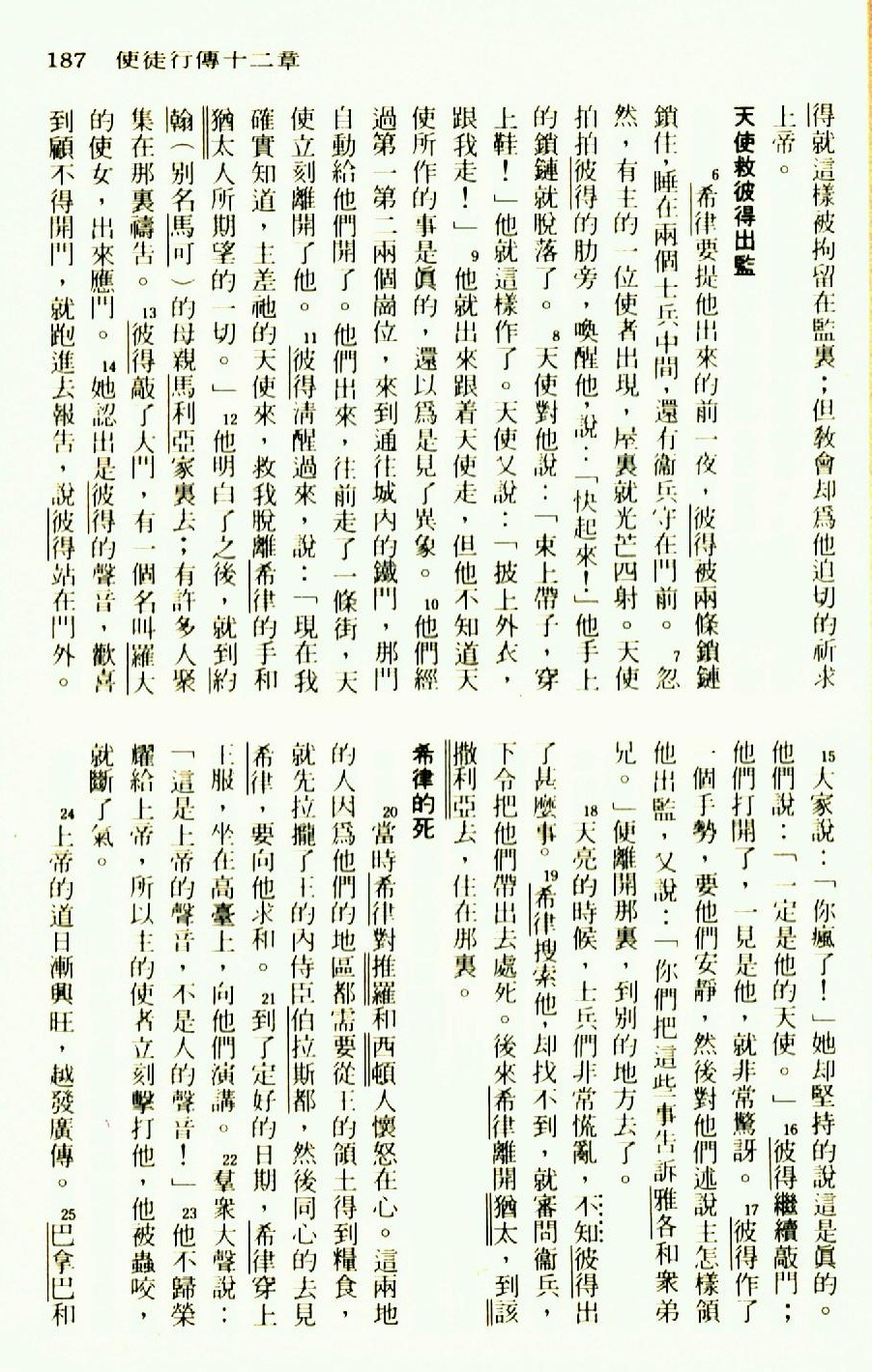 1976年圣经新译本新约 使徒行传 12 章 6 节到 12 章 25 节