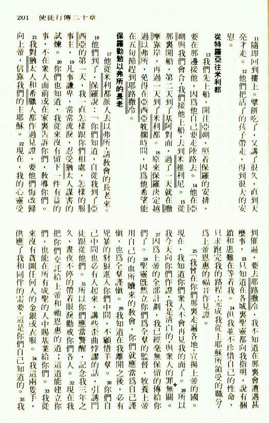 1976年圣经新译本新约 使徒行传 20 章 11 节到 20 章 35 节