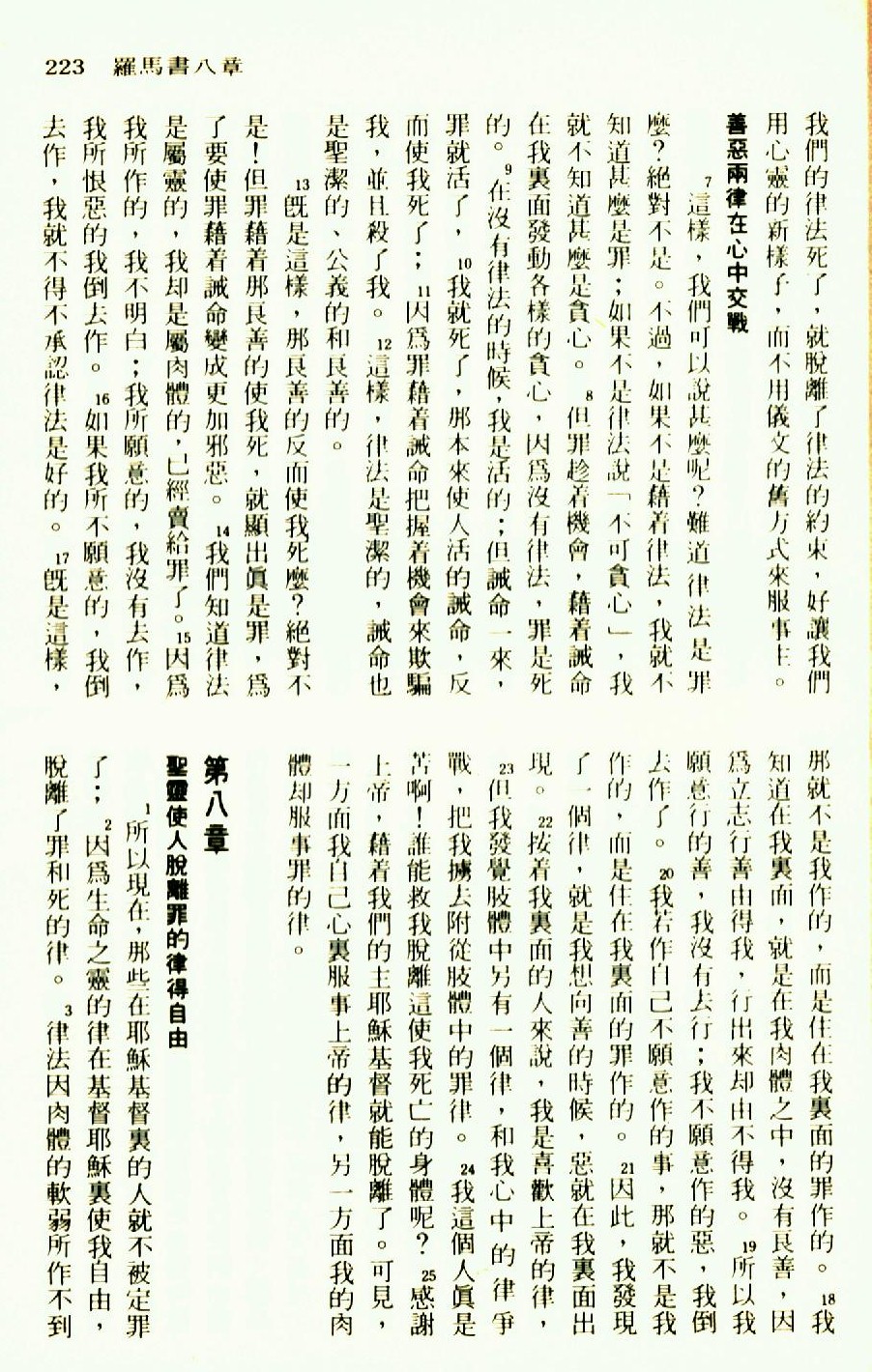 1976年圣经新译本新约 罗马书 7 章 7 节到 8 章 3 节