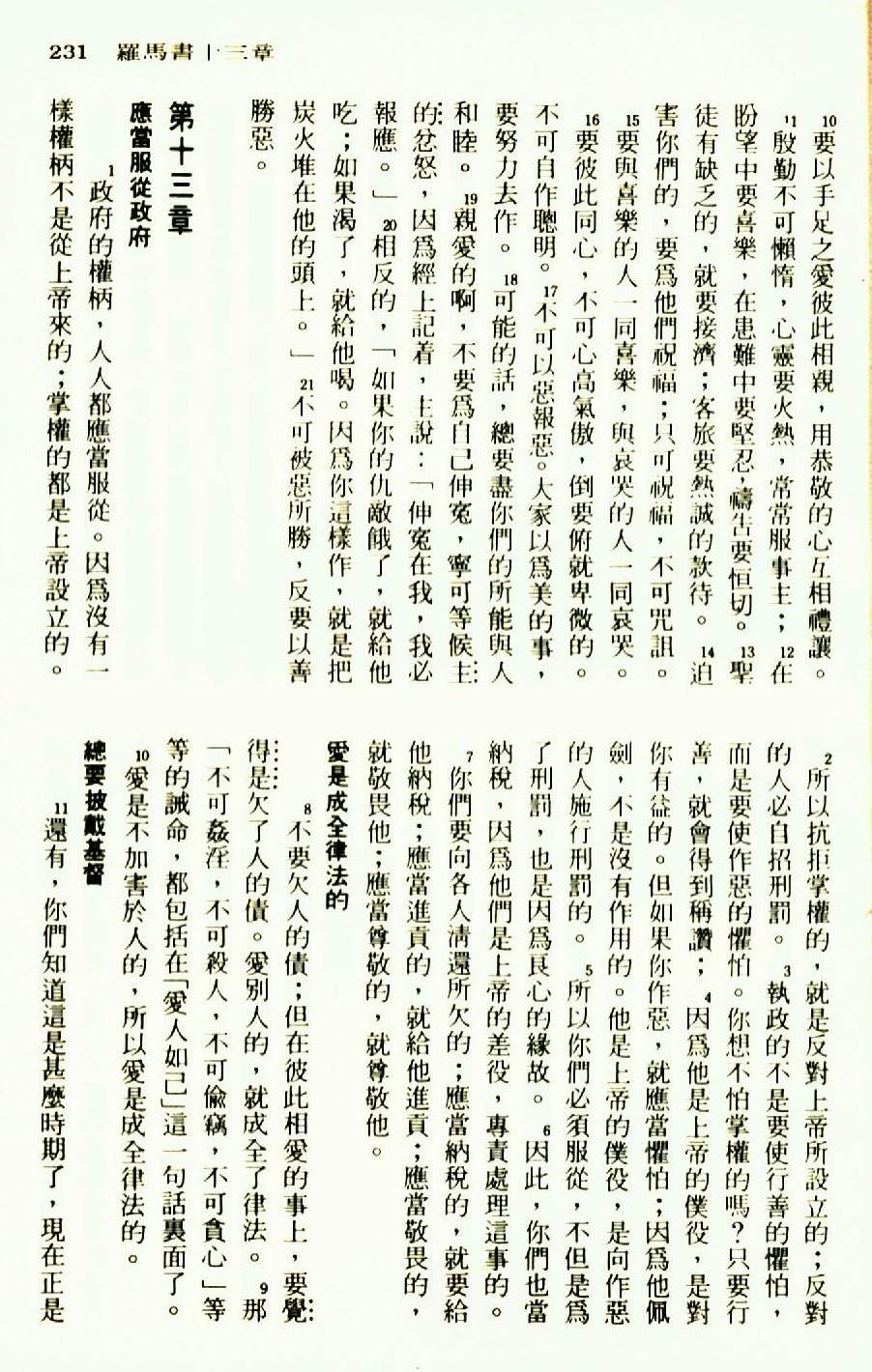 1976年圣经新译本新约 罗马书 12 章 10 节到 13 章 11 节