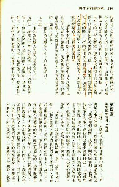 1976年圣经新译本新约 哥林多前书 3 章 14 节到 4 章 9 节