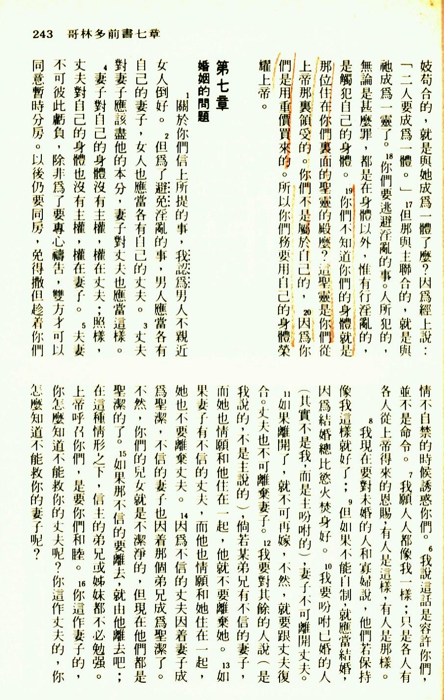 1976年圣经新译本新约 哥林多前书 6 章 17 节到 7 章 16 节
