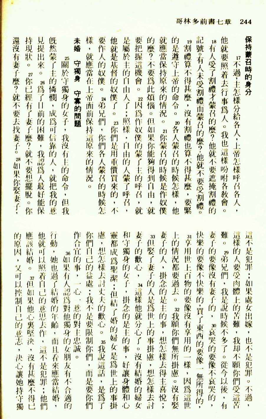1976年圣经新译本新约 哥林多前书 7 章 17 节到 7 章 37 节