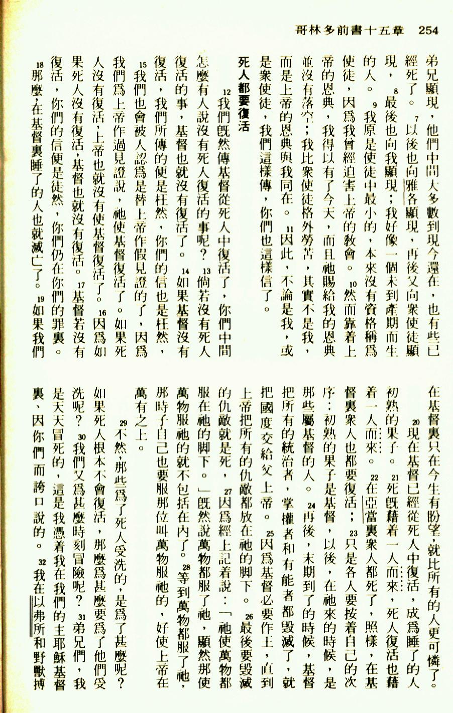 1976年圣经新译本新约 哥林多前书 15 章 7 节到 15 章 32 节