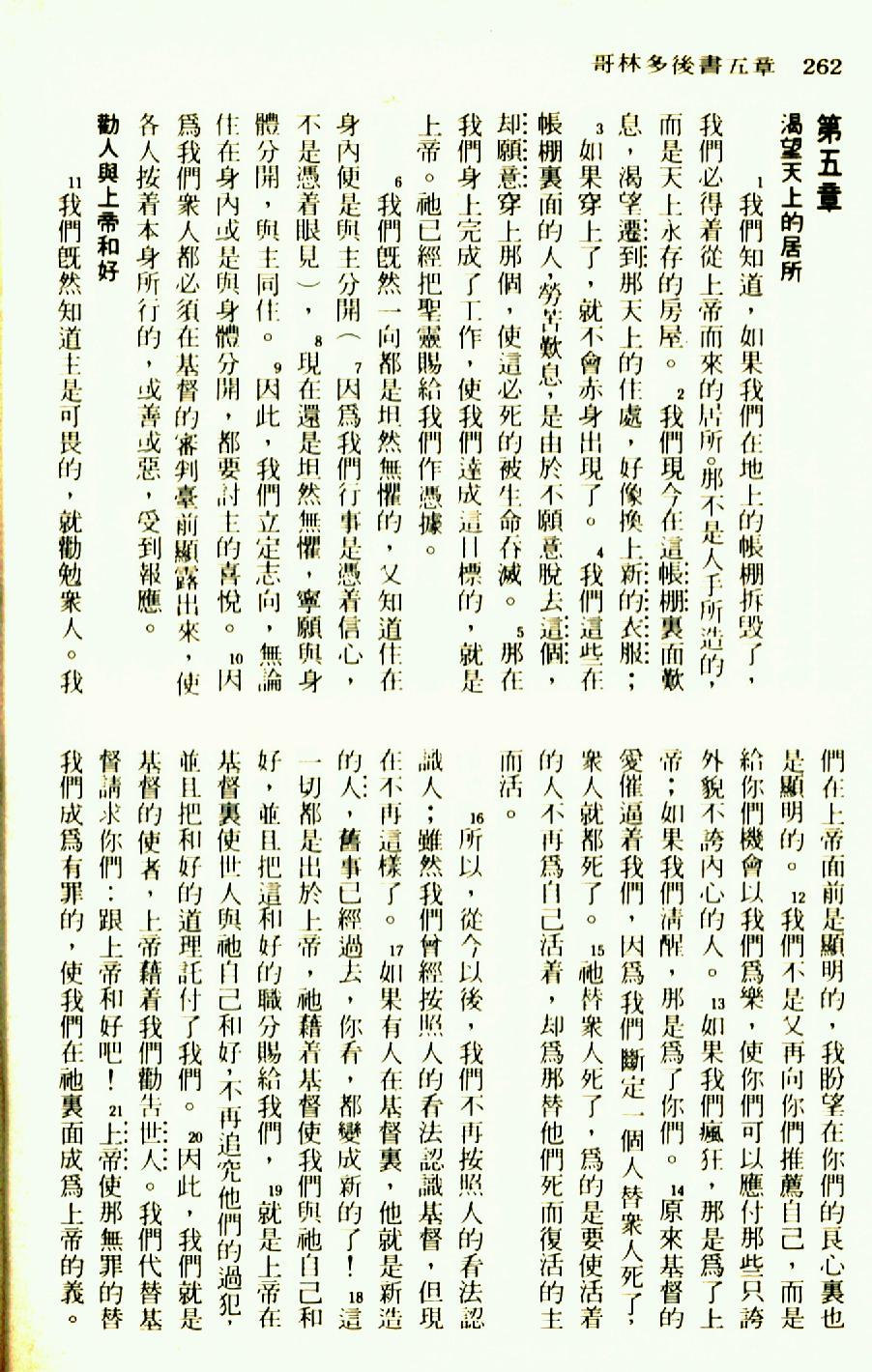 1976年圣经新译本新约 哥林多后书 5 章 1 节到 5 章 21 节