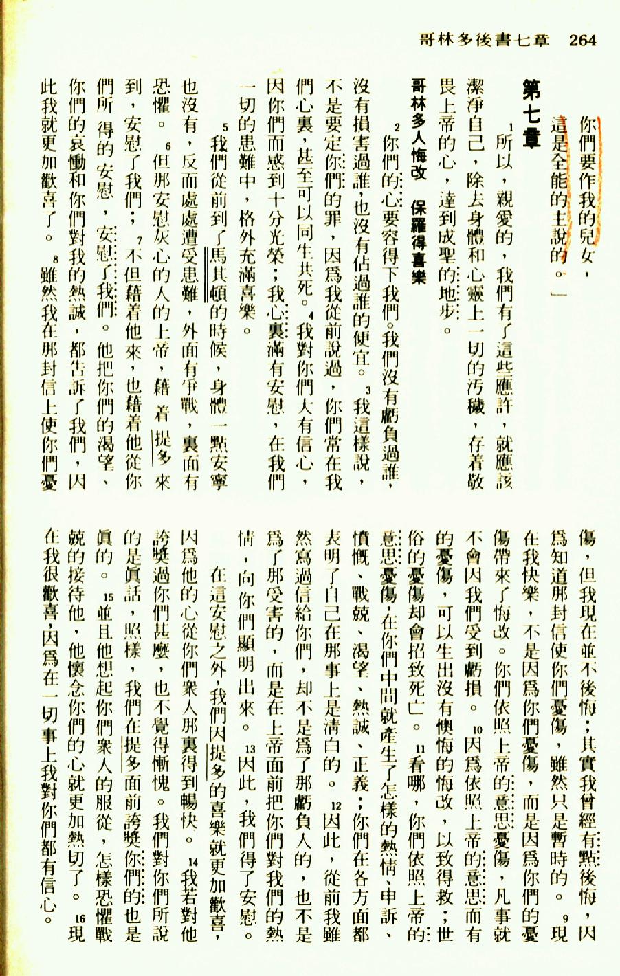 1976年圣经新译本新约 哥林多后书 7 章 1 节到 7 章 16 节