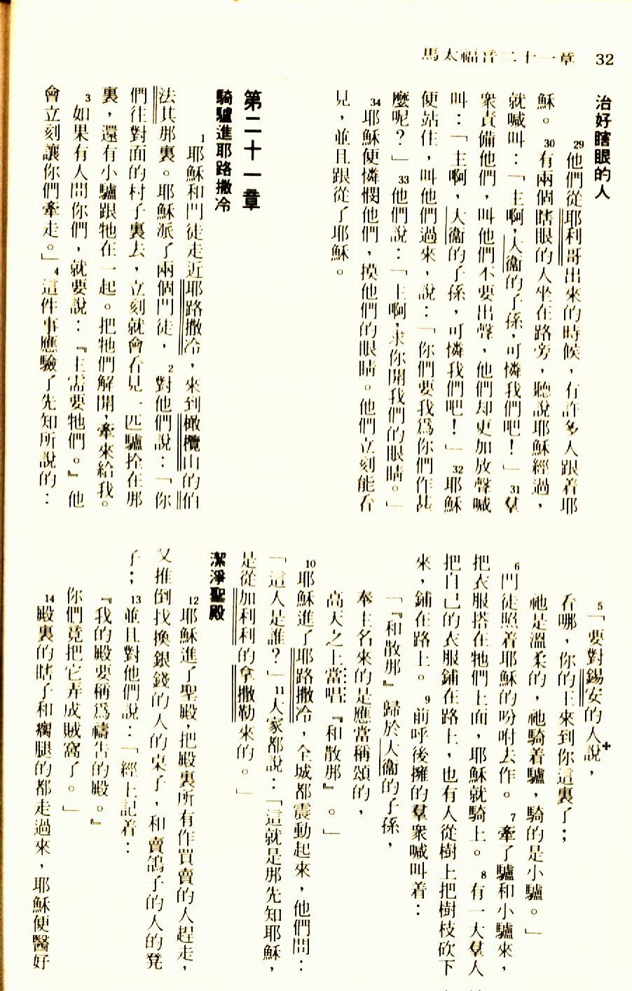 1976年圣经新译本新约 马太福音 20 章 29 节到 21 章 14 节