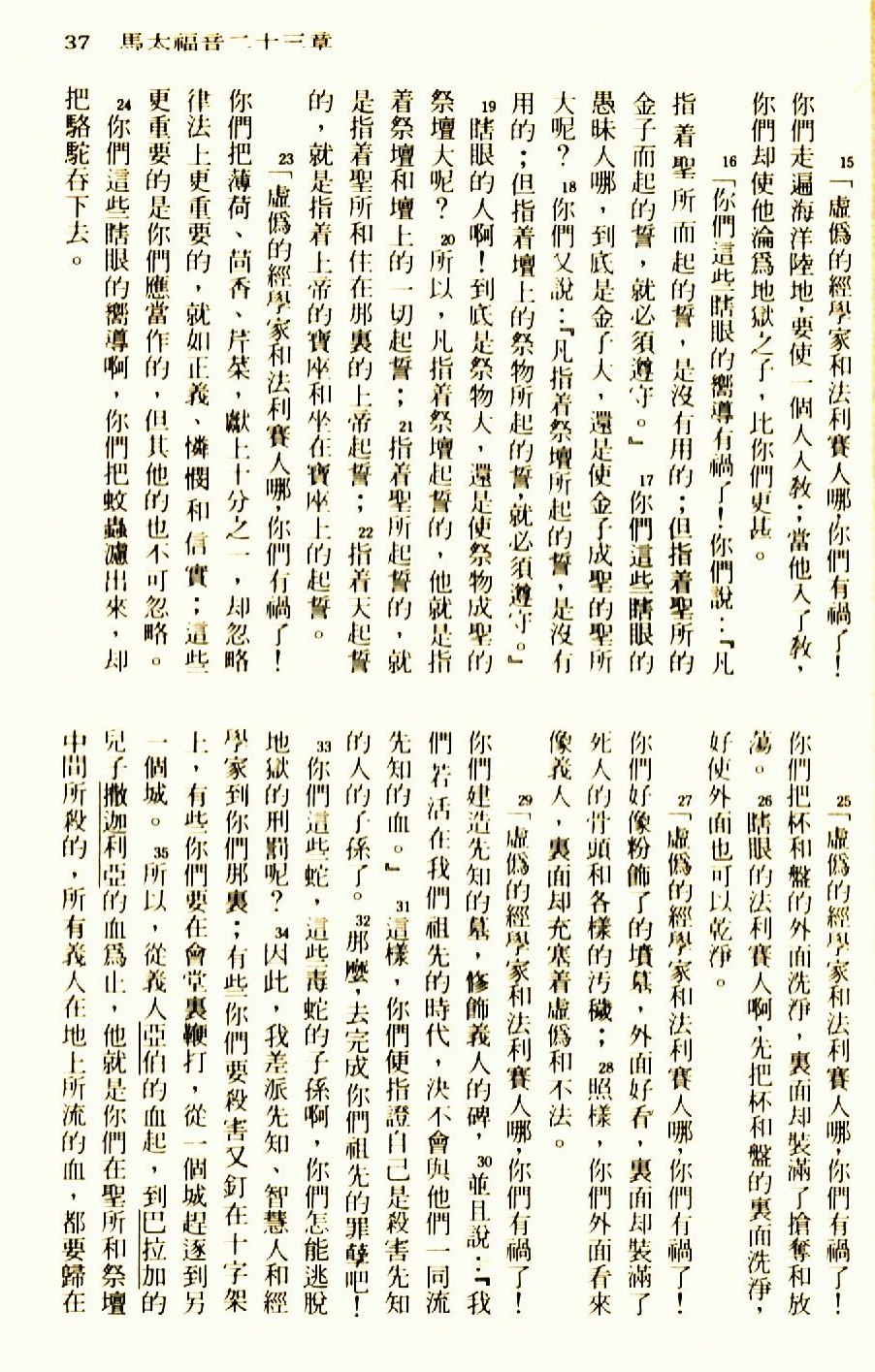1976年圣经新译本新约 马太福音 23 章 15 节到 23 章 35 节
