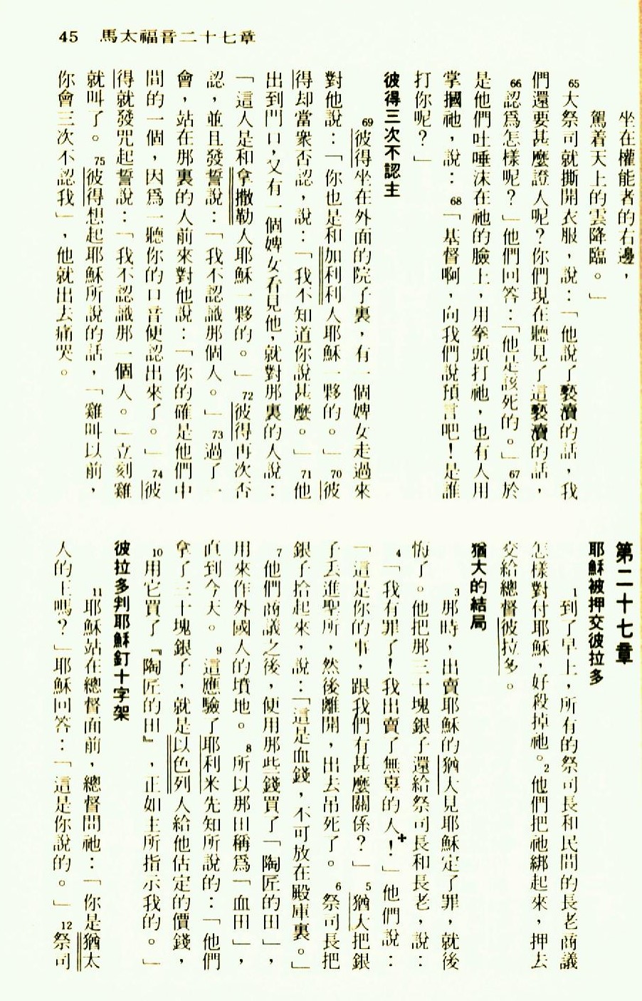 1976年圣经新译本新约 马太福音 26 章 65 节到 27 章 12 节