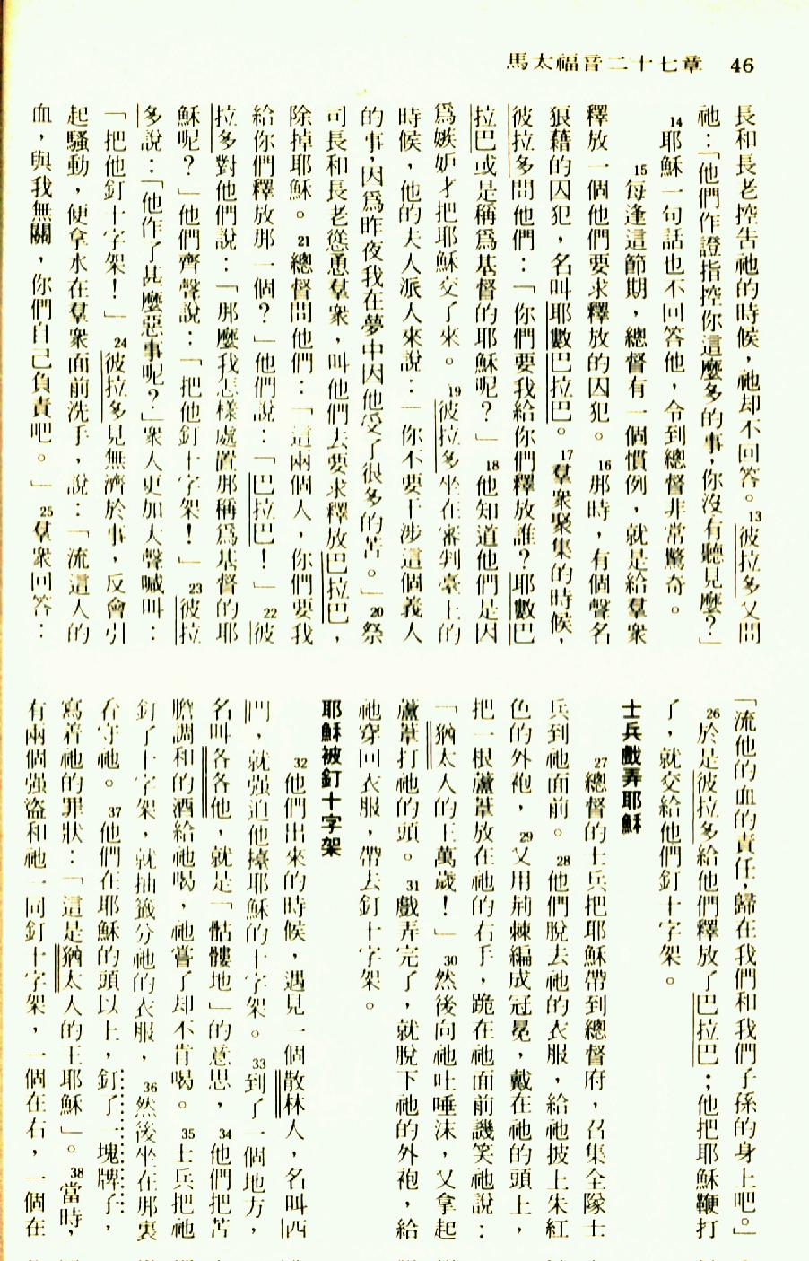 1976年圣经新译本新约 马太福音 27 章 13 节到 27 章 38 节