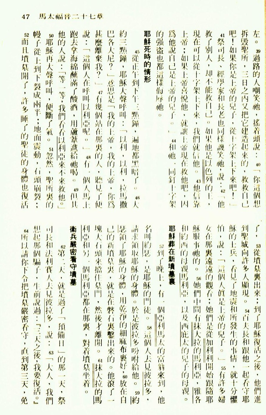 1976年圣经新译本新约 马太福音 27 章 39 节到 27 章 64 节