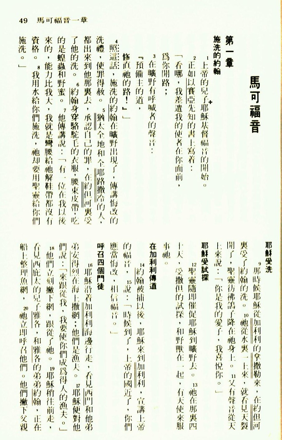 1976年圣经新译本新约 马可福音 1 章 1 节到 1 章 20 节