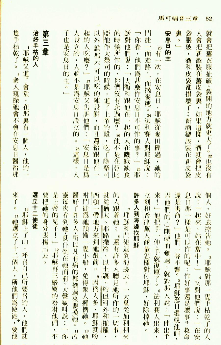 1976年圣经新译本新约 马可福音 2 章 22 节到 3 章 14 节