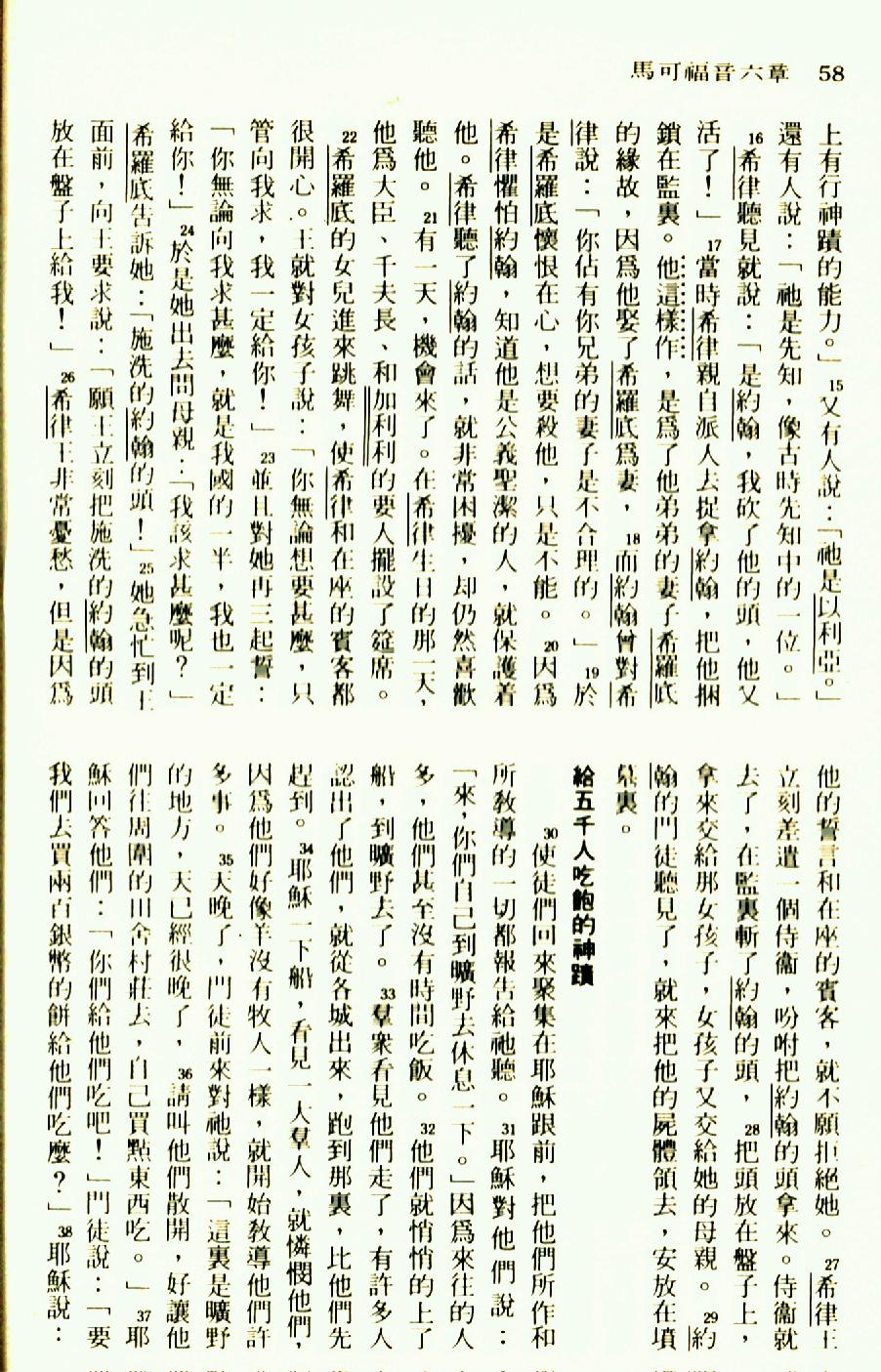1976年圣经新译本新约 马可福音 6 章 15 节到 6 章 38 节