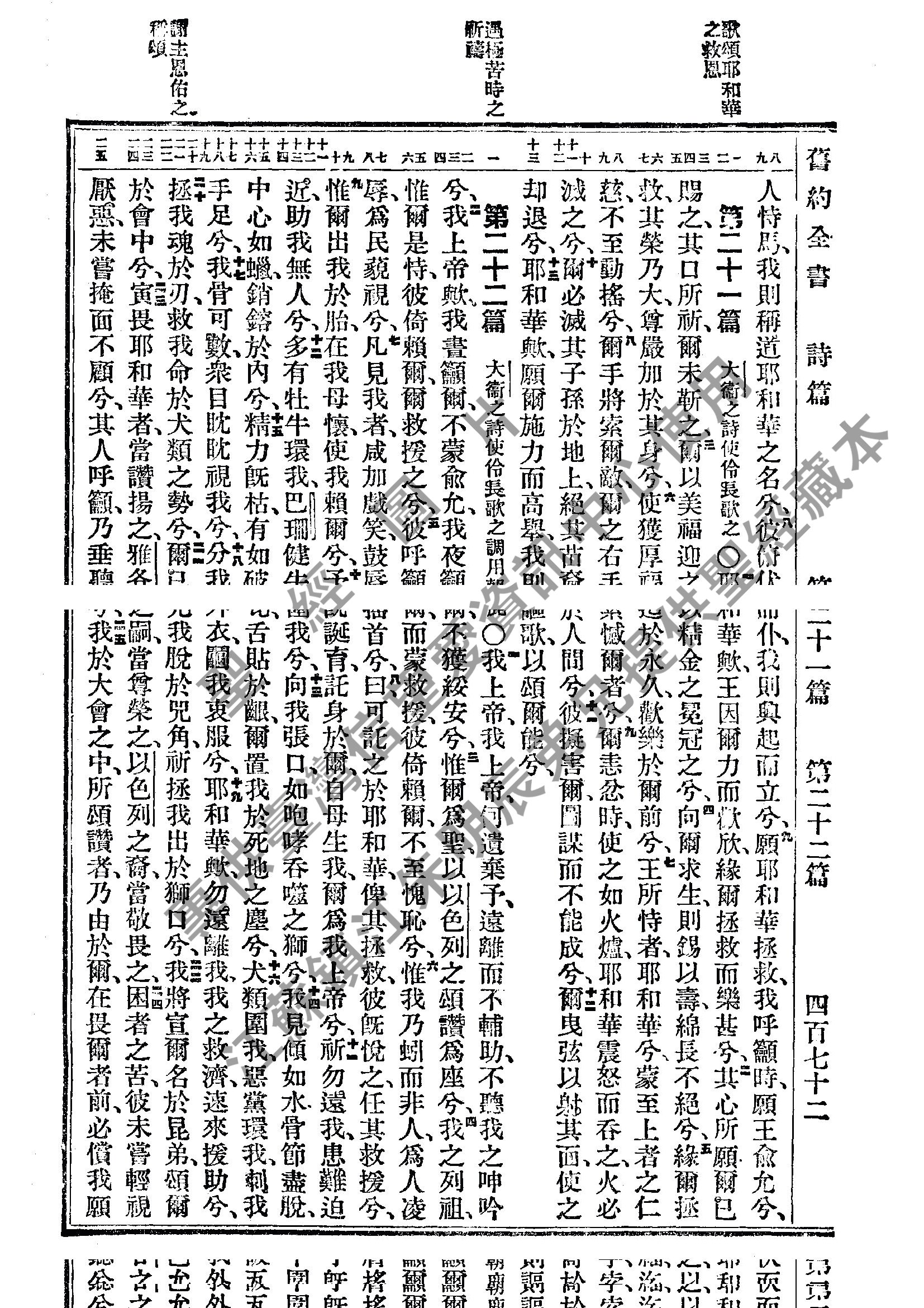1934年新旧约全书(文理和合本) 诗篇 20 章 到 22 章