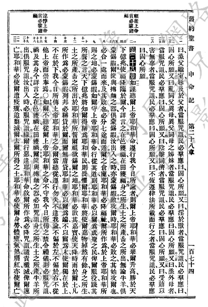 1927年新舊約全書(委辦譯本) 申命記 27 章 21 節到 28 章 22 節