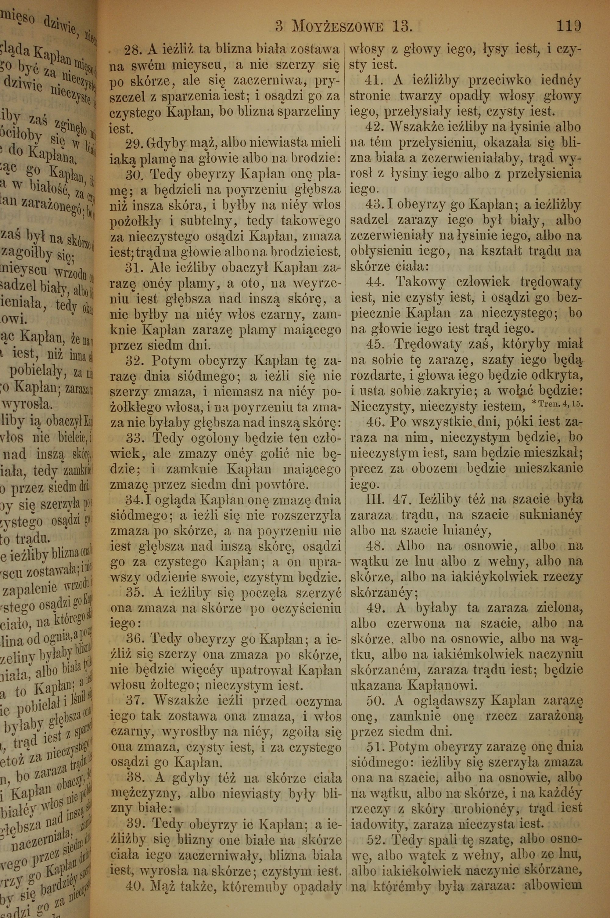 1857年波蘭文新舊約全書 利未記 13 章 28 節到 13 章 52 節