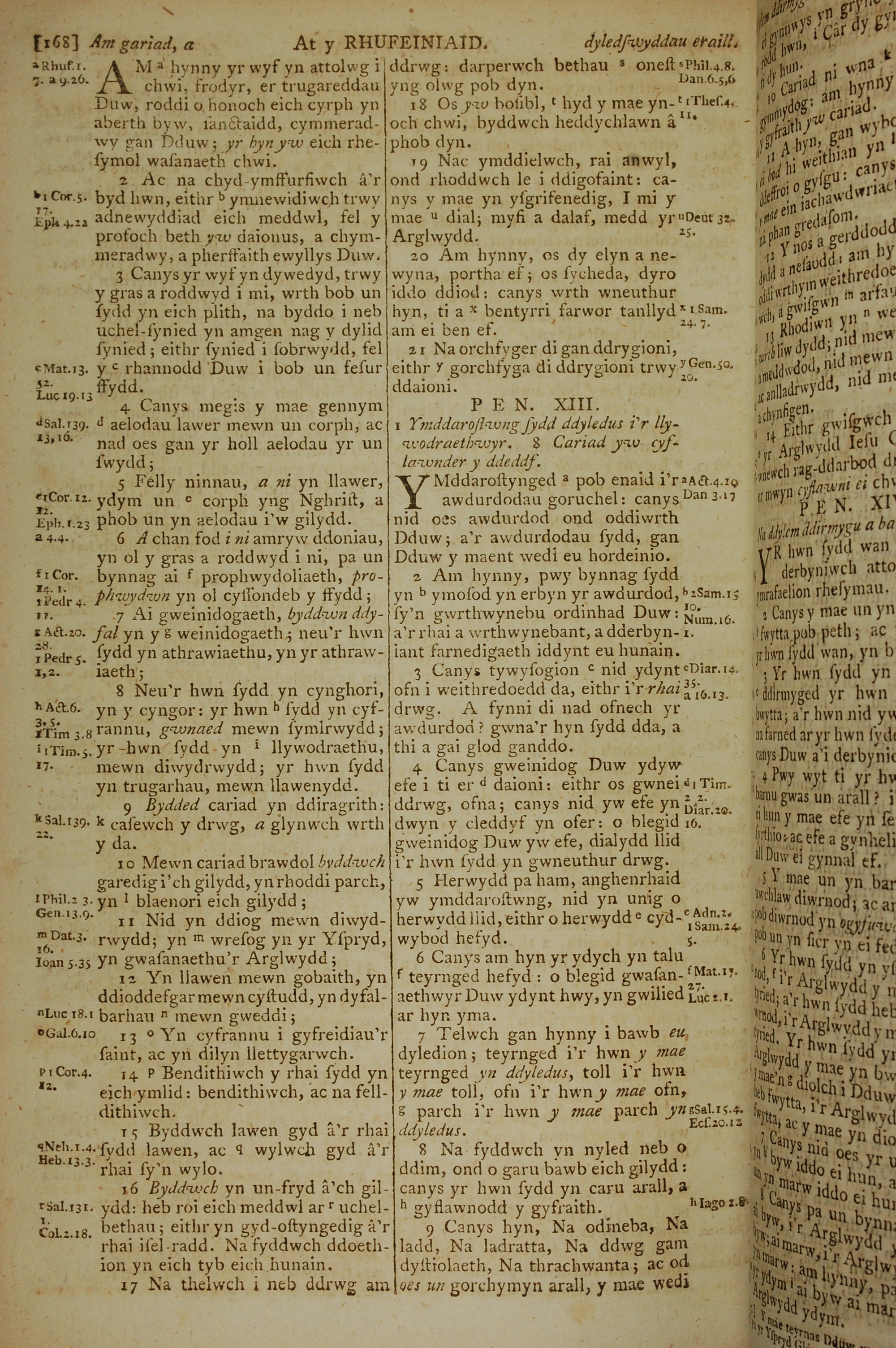 1796年威爾斯文新舊約全書 羅馬書 12 章 1 節到 13 章 9 節