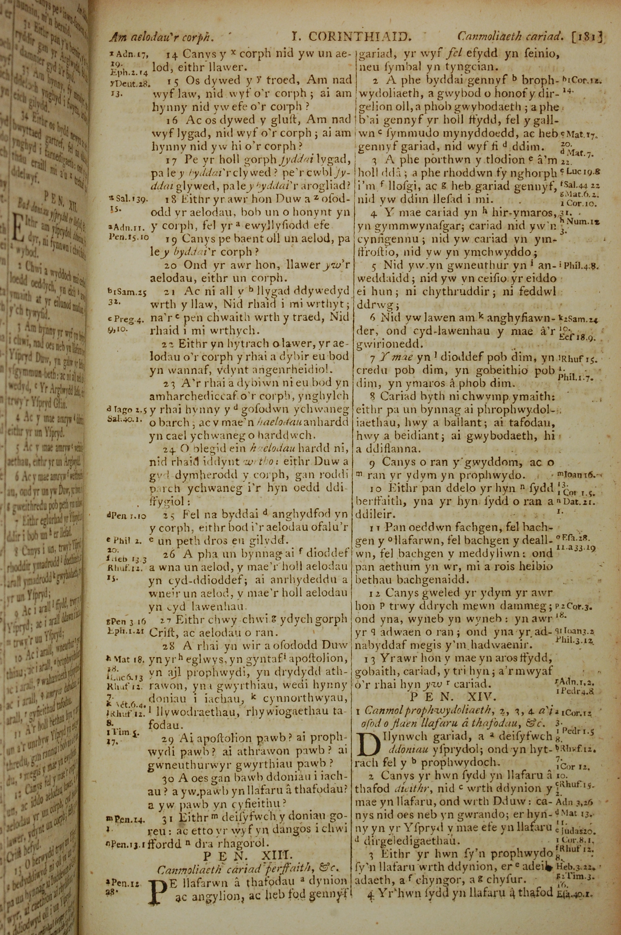 1796年威爾斯文新舊約全書 哥林多前書 12 章 14 節到 14 章 4 節