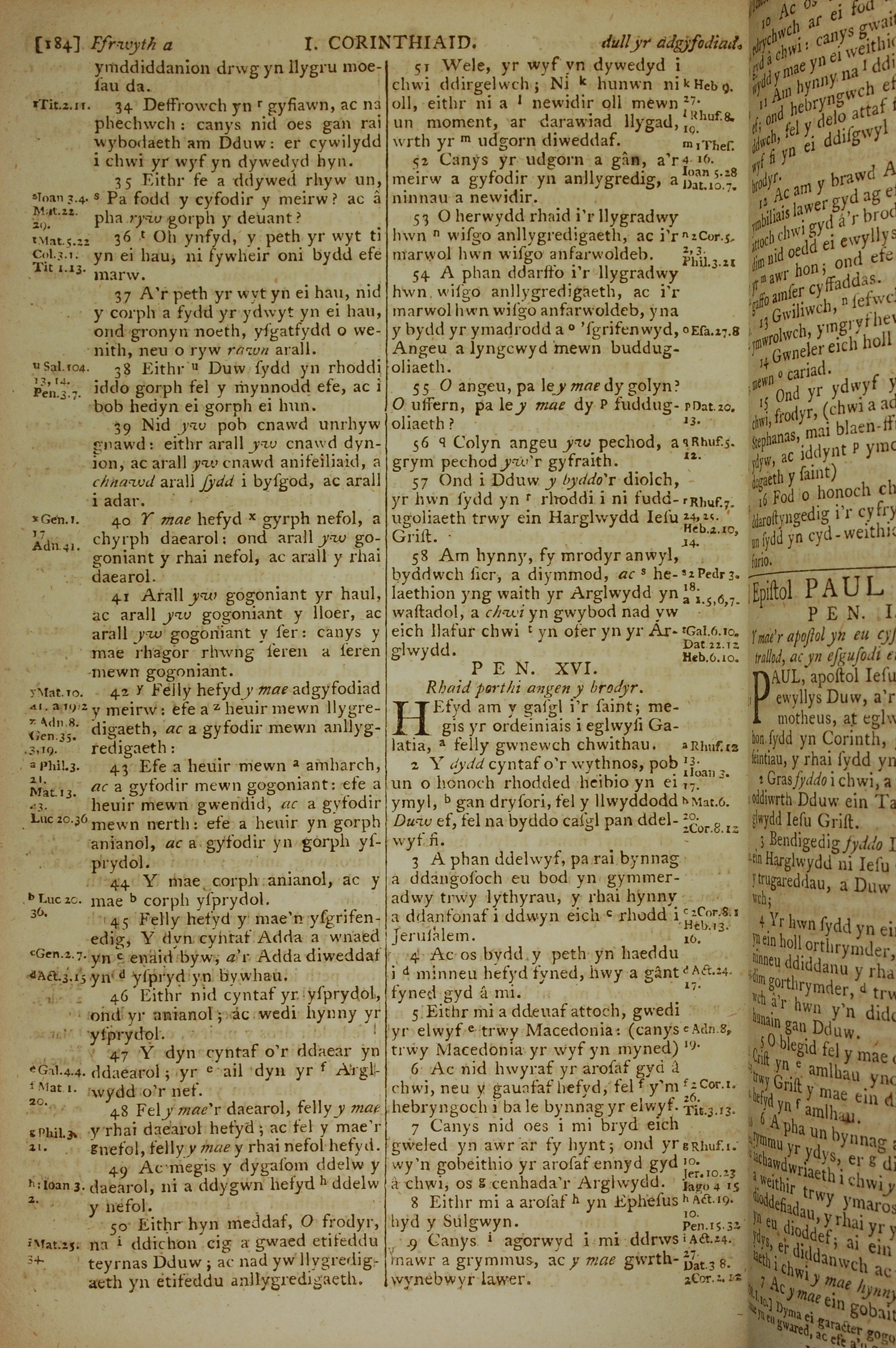 1796年威爾斯文新舊約全書 哥林多前書 15 章 34 節到 16 章 9 節