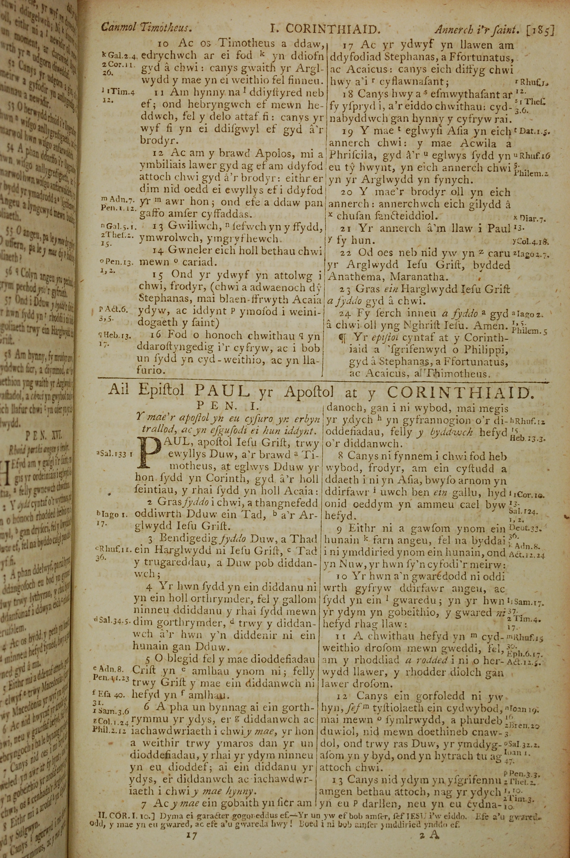 1796年威爾斯文新舊約全書 哥林多前書 16 章 10 節到 16 章 24 節