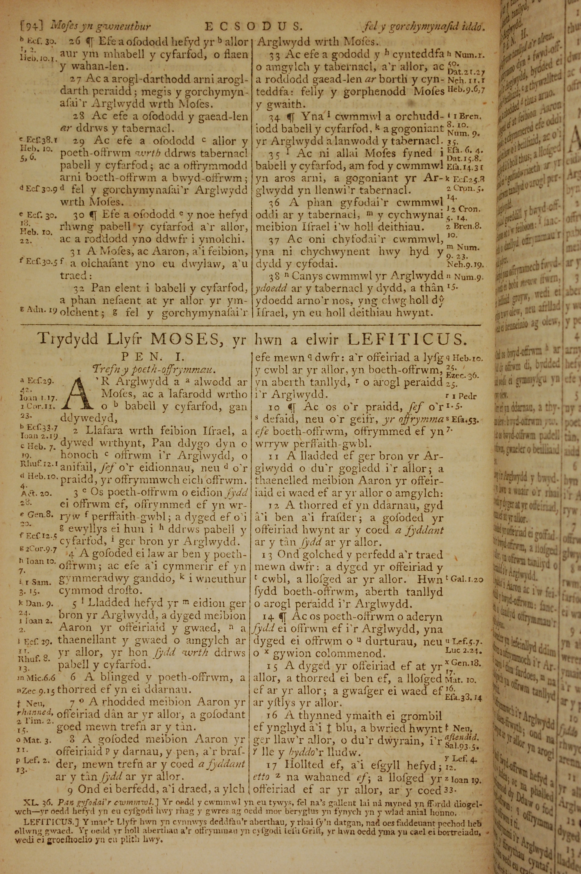 1796年威爾斯文新舊約全書 利未記 1 章 1 節到 1 章 17 節