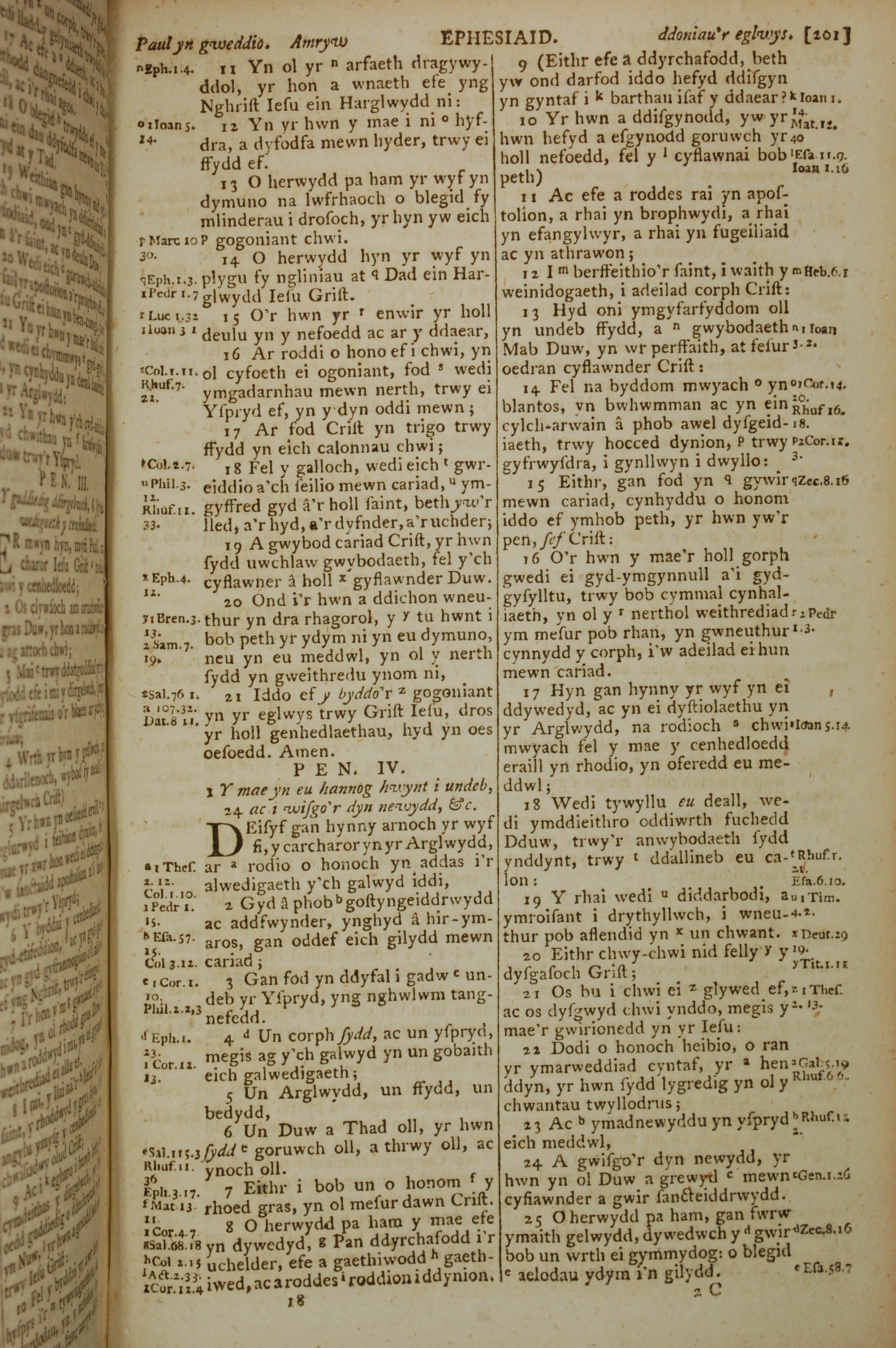 1796年威爾斯文新舊約全書 以弗所書 3 章 11 節到 4 章 25 節