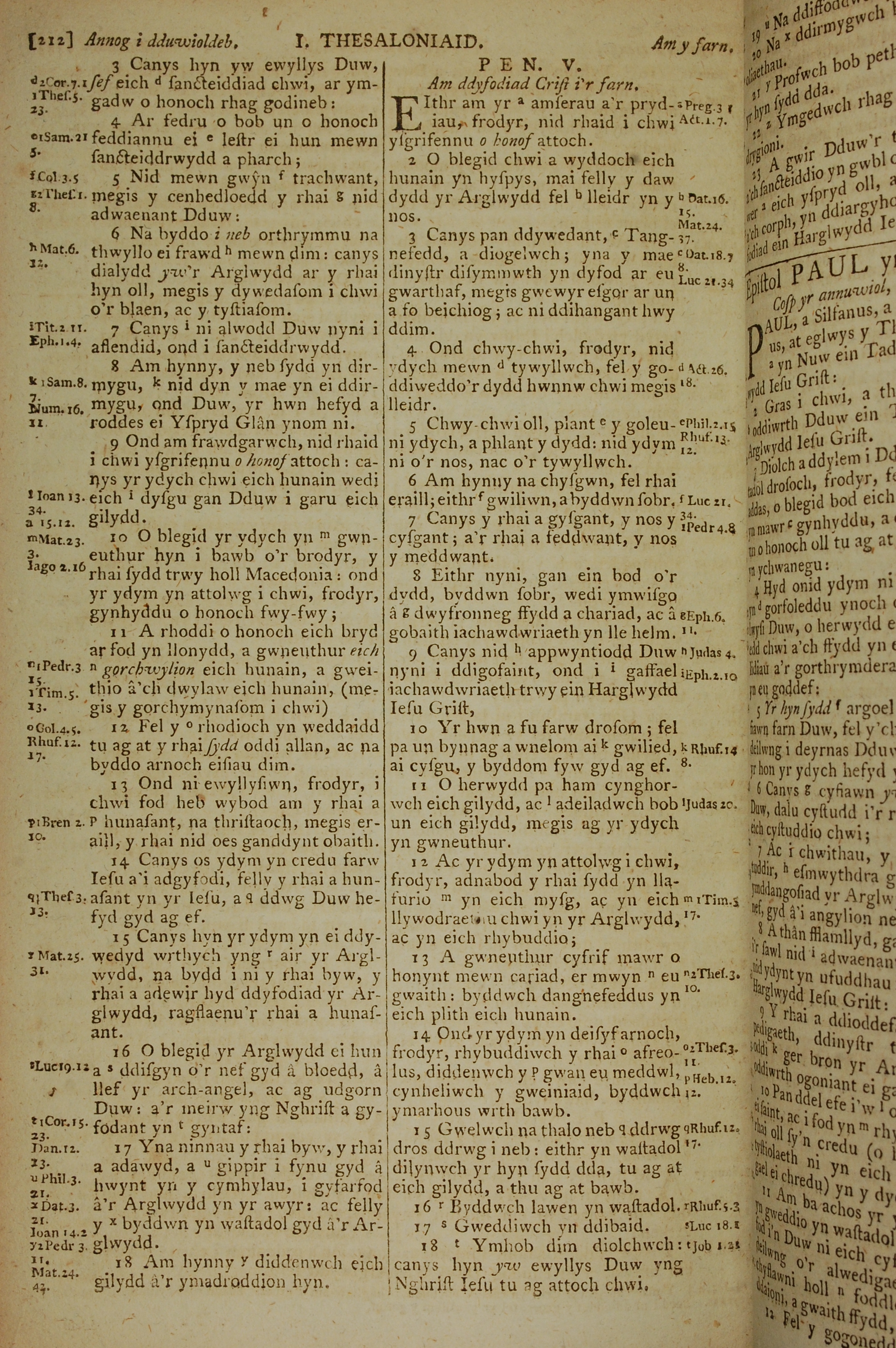 1796年威爾斯文新舊約全書 帖撒羅尼迦前書 4 章 3 節到 5 章 18 節